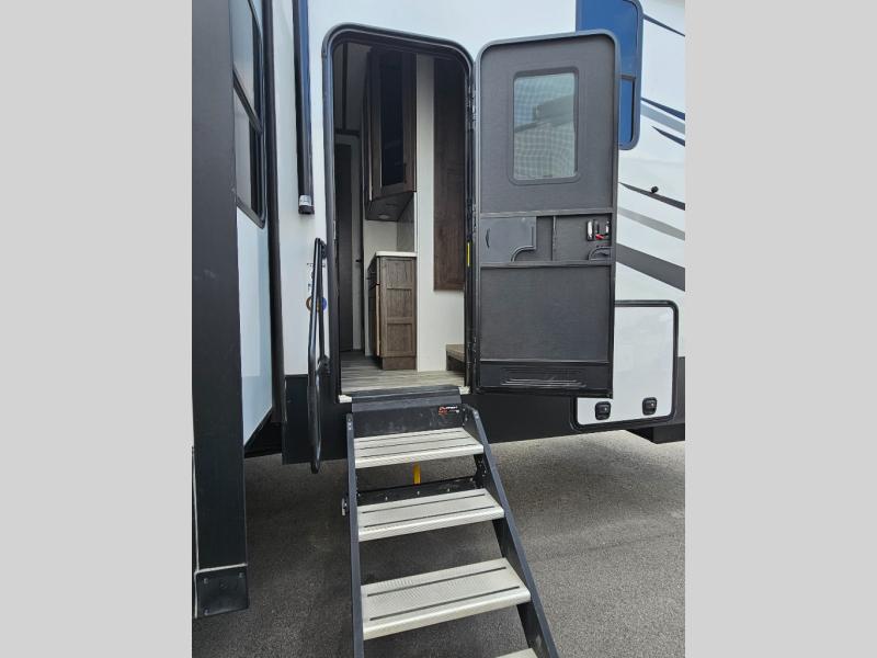 Whether you're hauling ATVs, dirt bikes, or need a garage space that doubles as a guest suite or mobile office, the Valor 41V15 offers unbeatable versatility. This pre-owned model is meticulously maintained and offers luxury accommodations for full-time travel or high-energy weekends. With ample space, rugged build, and upscale finishes—this toy hauler means business.