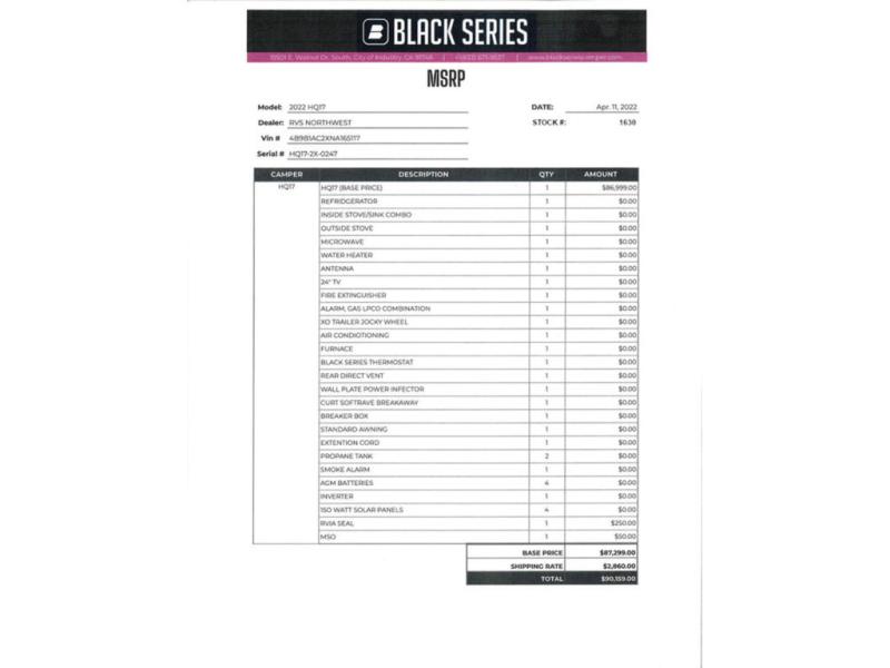 Used 2022 Black Series Camper HQ17 Travel Trailer