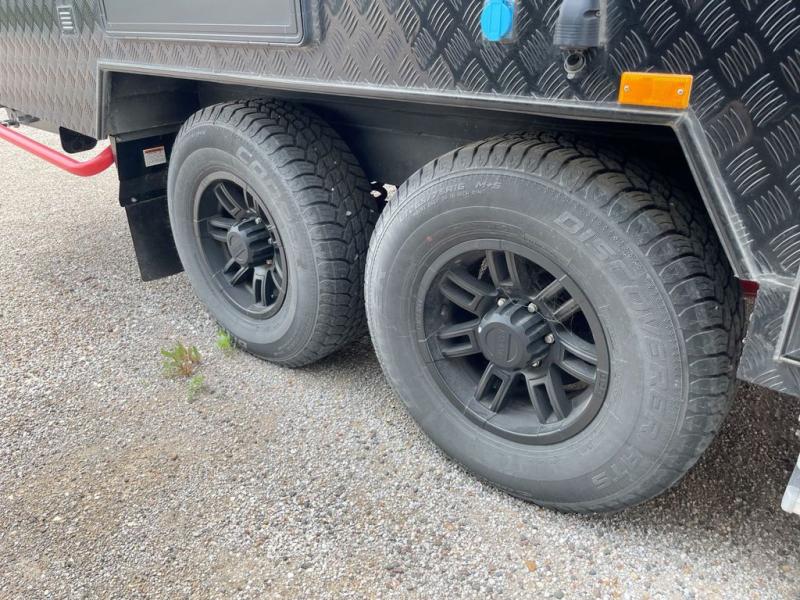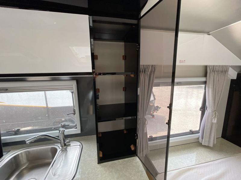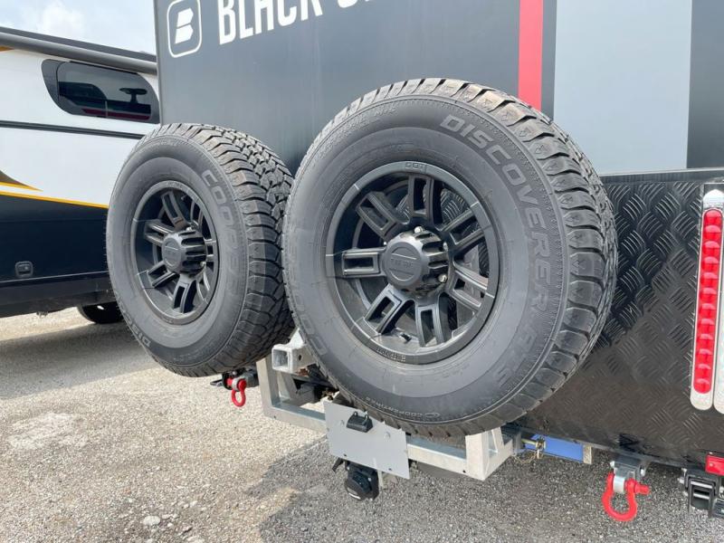 The Black Series Camper HQ Series travel trailers are one-of-a-kind! You won't find many more trailers like these out on the market. Built for the extreme camping enthusiast, the HQ Series is off-road and off-grid friendly. These rugged trailers have aluminum composite panels with added aluminum diamond plating for added strength and a stone guard/skid guard that adds protection for the bottom edge of the trailer. The Eurovision windows have a fly screen and privacy shades, and there is also a tri-lock security door with locking fly screen. An amazing feature that comes on each of the models is the outdoor kitchen which has a stainless steel sink slide, a propane stove, and a large prep table, and the roof-mounted solar panels are amazingly useful for those off-grid trips.