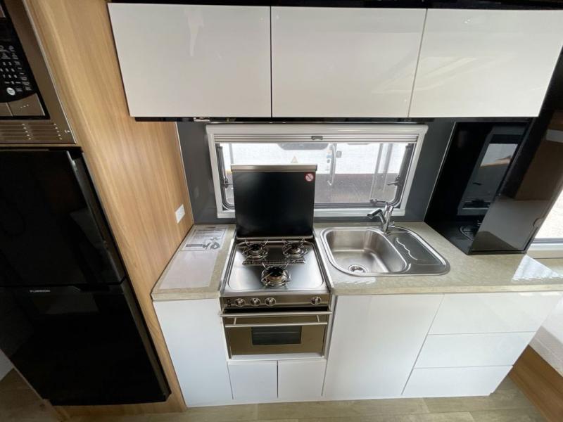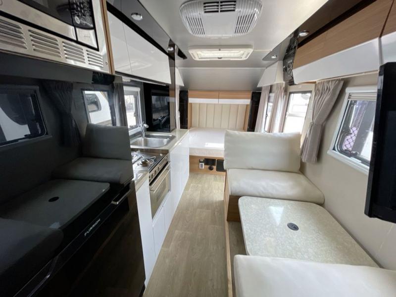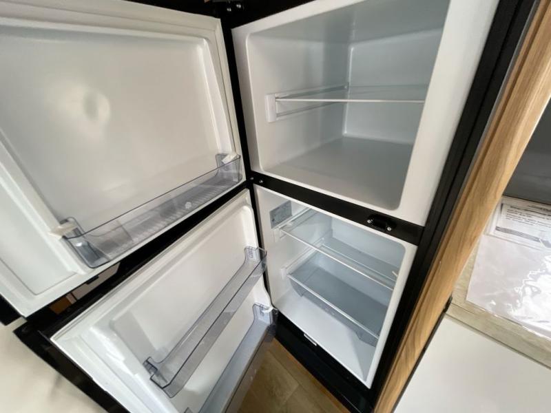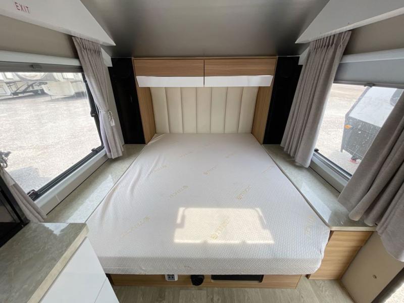Taking this HQ Series travel trailer out for a spin will be oh-so fun! This flagship model showcases the most luxurious design in the whole series, and you will absolutely love spending your time in this trailer because of the serene and beautiful interior décor. At the front, you will find your own RV queen bed where you can lounge, relax, and sleep in peace, and when you walk to the back of this trailer, you will find a bathroom complete with a full fiberglass shower, porcelain toilet, vanity, and washer for your clothes! After you make a hot cup of coffee, sit down with a good book at the convertible lounge with up-down table. You can also use this lounge as a sleeping space at night.