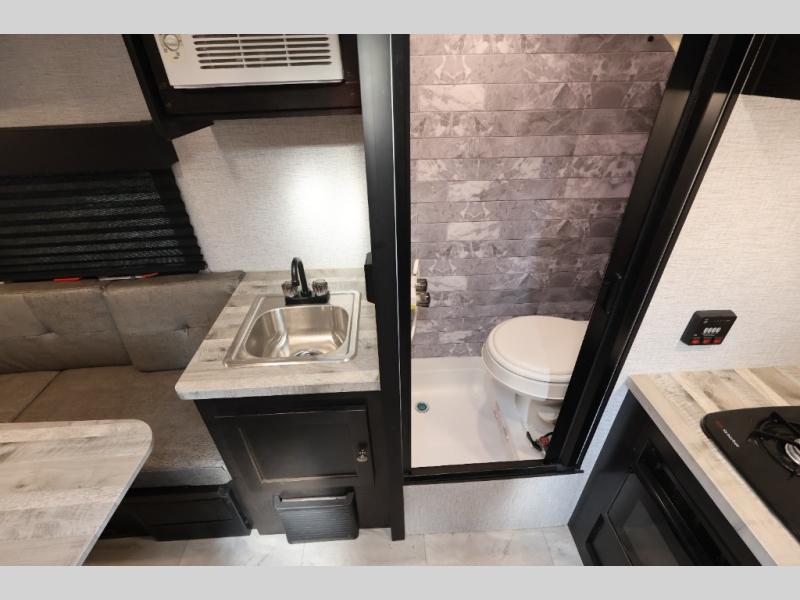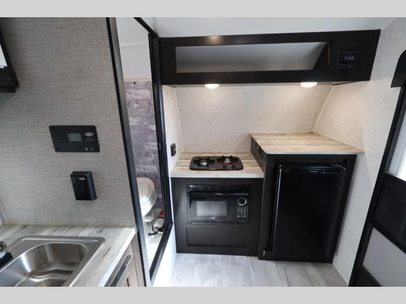 You can be free to explore with the comforts you've grown to love in this Free Solo Plus teardrop trailer! After you exert all of your energy exploring the campsite, you'll want to have a hearty meal to replenish that energy, and the two-burner cooktop and 12 volt refrigerator are going to be the most help to get that task done. You won't even have to try to start a fire in order to get dinner ready. The other feature that is going to be extremely useful is the wet bath. Now you can get cleaned up after that last hike. You can also use the Bluetooth stereo with speakers to play some fun and upbeat music as you finish out the day.