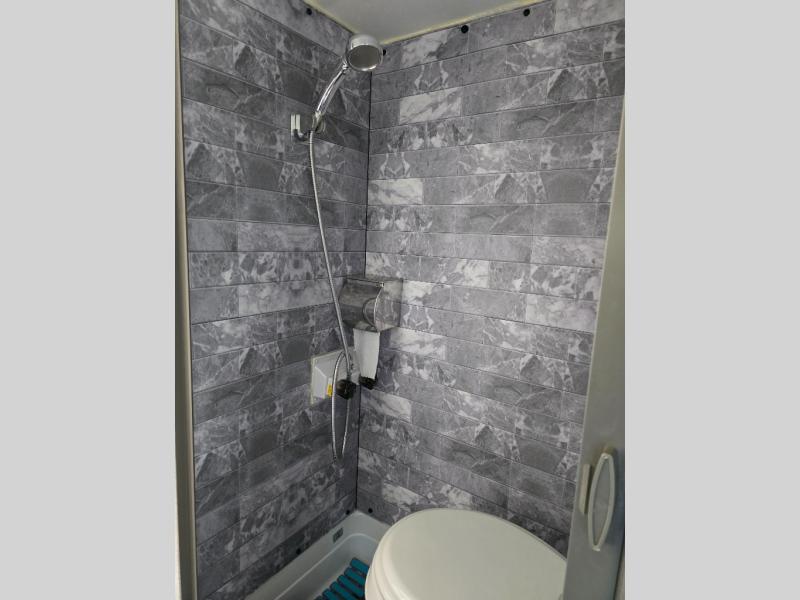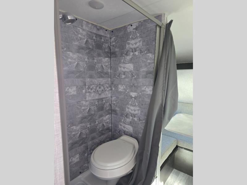 Even in a small trailer, you’ll find everything you need for a great camping trip, including a wet bath with toilet and shower—perfect for campers who prefer not to rely on campground bathhouses.