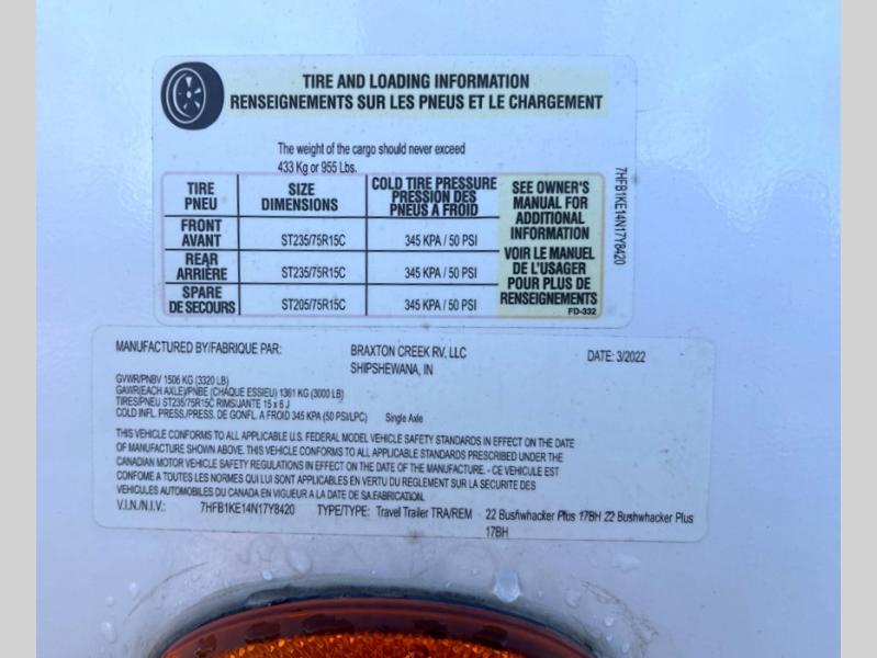 Used 2022 Braxton Creek Bushwhacker 17BH Travel Trailer