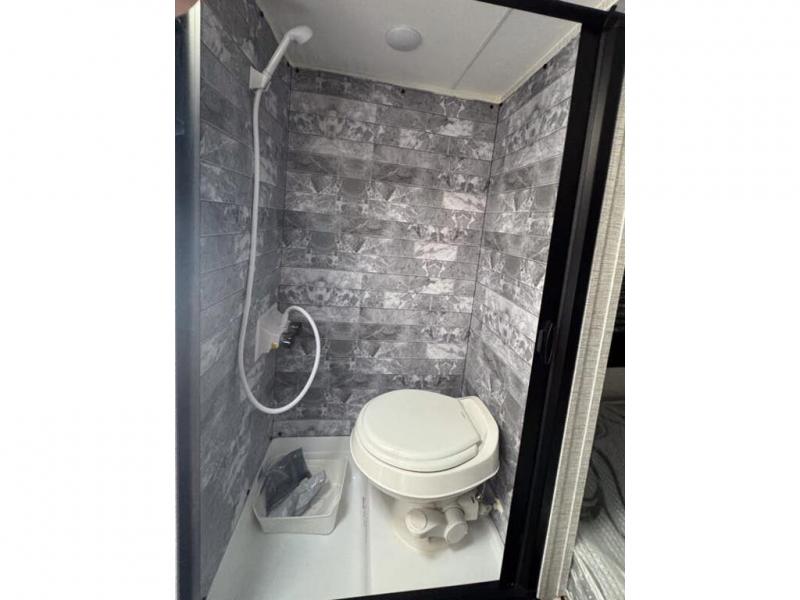 You and your loved one will have a great adventure with this teardrop trailer! Start your mornings off feeling recharged and ready to go after sleeping on the 4 inch deluxe comfort quilted bed mattresses. The Vortex roof vent helps to circulate fresh air in and out of the unit, and the 5,000 BTU wall-mounted A/C has a simple interface to cool it off quicker. There are LED lights and multiple 110V, 12V, and USB outlets conveniently located throughout. The exterior kitchenette comes with a two burner cooktop with cover, an integrated sink with a 24 gallon fresh water tank, and a Shurflo 12V water pump, plus a 30 quart K2 Summit Series cooler!