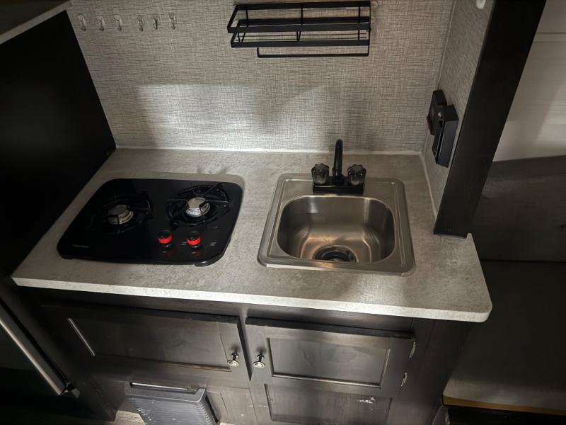 The Braxton Creek Bushwhacker Plus teardrop trailers include a 3,000 lb. high-clearance, torsion-flex, independent axle for smooth towing, and over-sized, all-terrain radial tires with alloy aluminum sport wheels to go off the beaten path. The durable Norco, stamped steel, e-coated mainframe means you can enjoy your trailer for years to come, and the two rear BAL stabilizing jacks will provide stability as you camp. The Bushwhacker Plus is perfect for those looking for a little extra comfort during their adventures. You'll find an extended wet bath, which you won't find on most teardrop trailers, a small but mighty kitchen area that allows you to make meals each day, plus a 12,000 BTU furnace so you can camp well into the colder months.