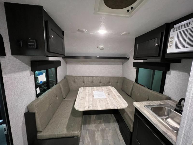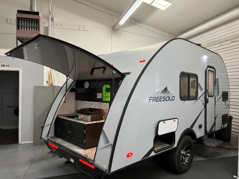 Step into the 2022 Free Solo Plus and you’ll find a compact, adventure-ready space designed with outdoor enthusiasts in mind. The interior offers a cozy sleeping and lounging area, a well-equipped kitchenette, and thoughtful storage that keeps gear neatly tucked away without sacrificing comfort. Large windows bring in natural light and help the space feel open, while the clean, simple layout makes it easy to settle in after a long day on the trail.