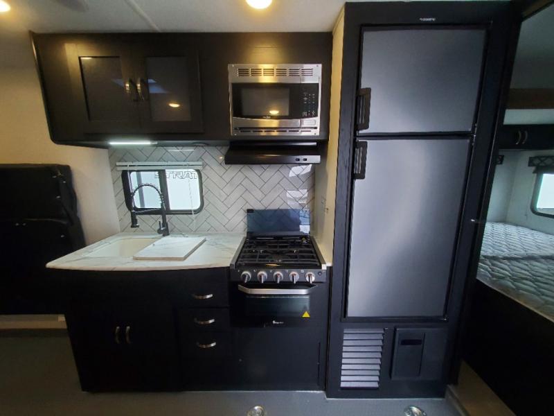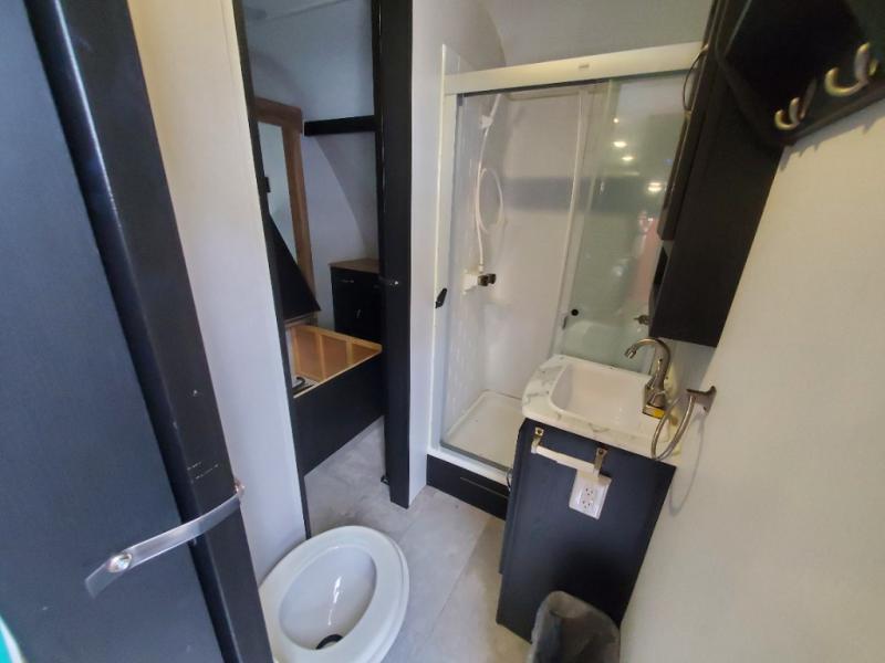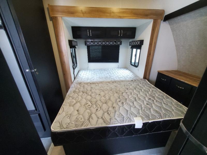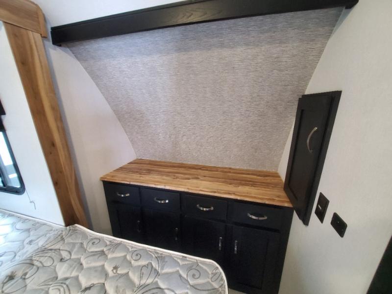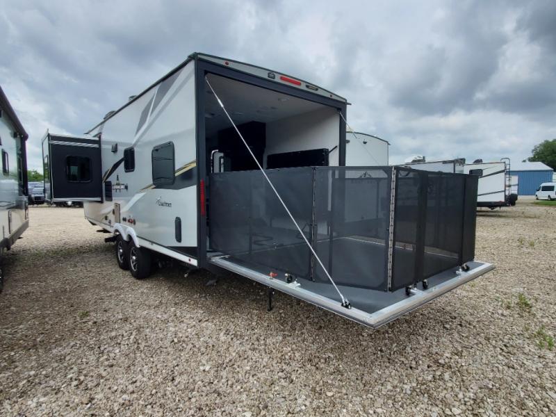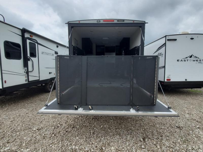 Load up your toys into 13' 8" of cargo space, your clothes in the dresser and wardrobe, your gear in the overhead cabinets and your food in the refrigerator for a weekend or longer trail ride! The chef of the group can prepare breakfast on the three burner cooktop that includes an oven or use the microwave and there is plenty of storage space in the overhead cabinets for kitchen necessities and snacks. The dual entry bath and a master bedroom are both along the front of the trailer giving you privacy and convenience. When it's finally time to call it a night, you will enjoy the queen bed slide and your guests can convert the two roll-over sofas for a great night's rest, and the queen bed electric lift if you added that option.