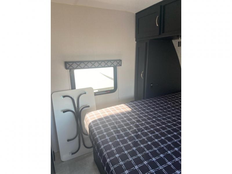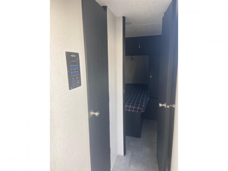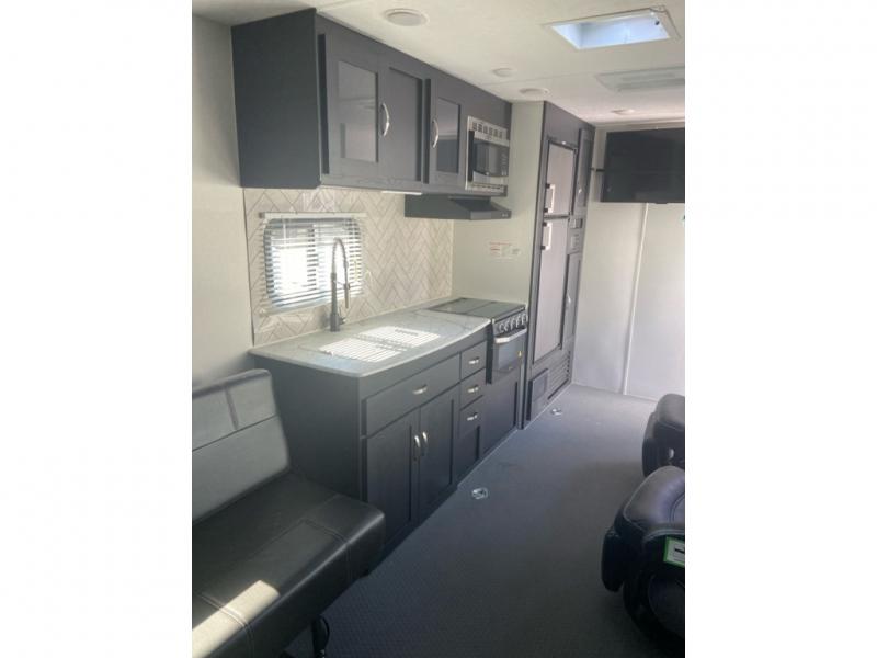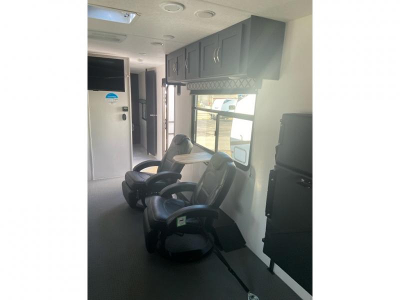 Whether you hit the trails or relax indoors, you will love having this travel trailer at the campsite! After you've unloaded your dirt bikes from the 15' 9" garage, enjoy lunch on the roll-over sofas with a dinette. You may even decide to check the weather on the 39" LED HDTV before heading out to find a trail. This trailer includes a dual entry bath with a shower skylight for extra standing space and the front master bedroom will provide complete comfort with its king bed. And you can choose a few options to add such as an electric bed over the sofas for more sleeping space, a 30 gallon fuel tank to keep the toys running the whole trip, plus more if you like.