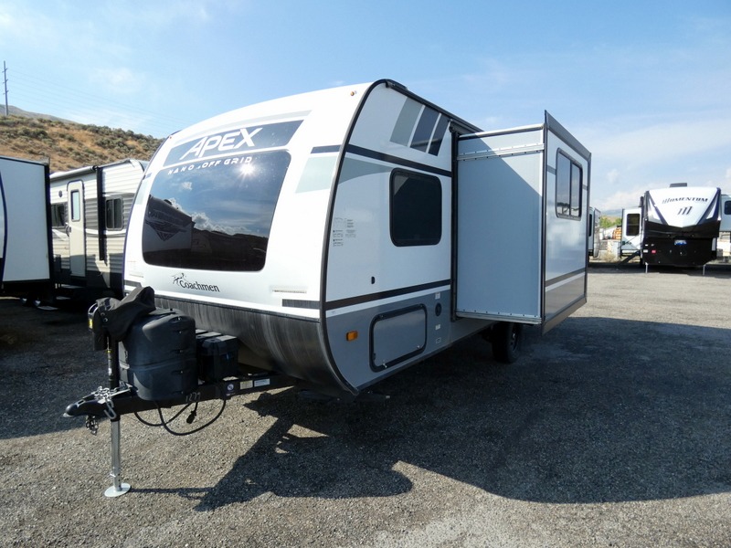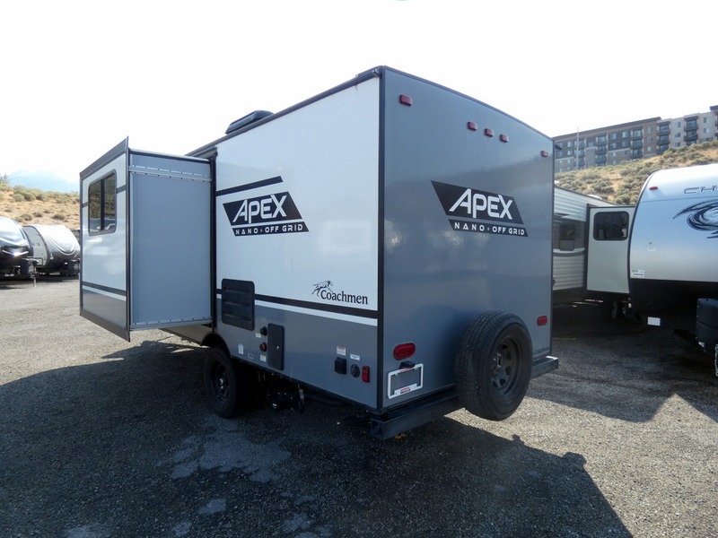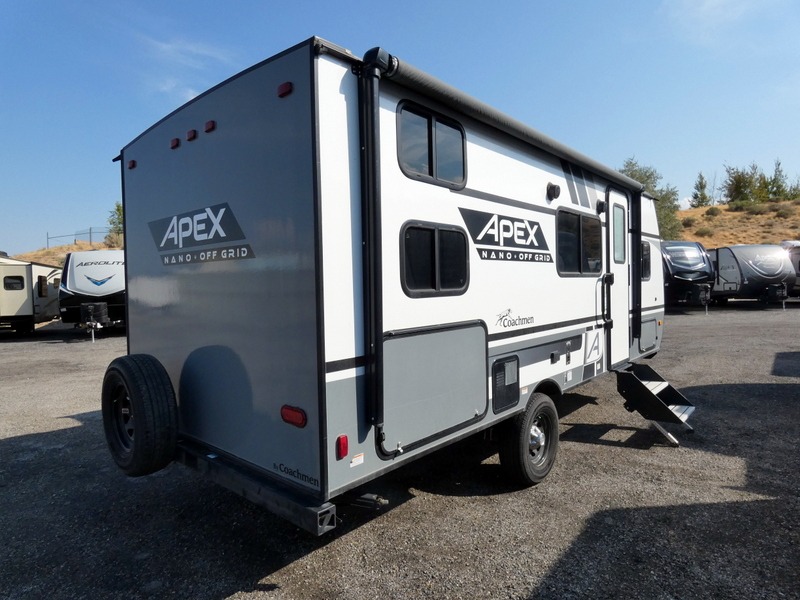 You will find comfort, convenience, and a sturdy construction with each of these Coachmen RV Apex Nano travel trailers! They are held together with an aluma-cage construction, vacuum-bonded Azdel fiberglass walls, an I-beam chassis, and a roof membrane with Dicor Crossflex, plus the powder coated frame is corrosion resistant. The Dexter E-Z lube axles and nitrogen filled radial tires will help you arrive safely. The mandatory Nano package comes with many features to make camp life better like magnetic baggage door catches, outside speakers, a digital TV antenna with cable hook-ups and WiFi capability, and a hot/cold outside shower to keep the dirt outside where it belongs. Come find the perfect model that fits your needs today!