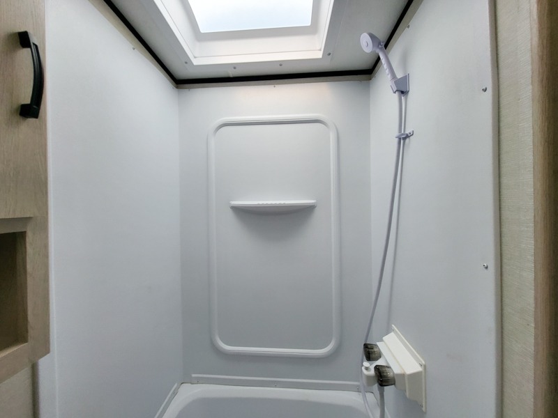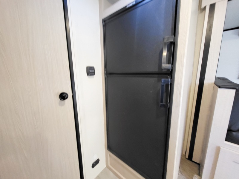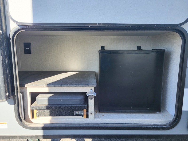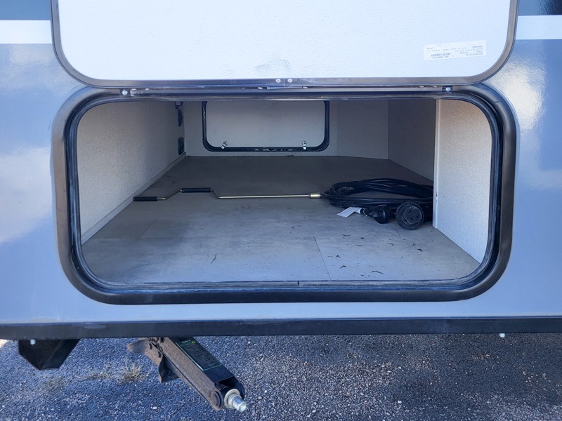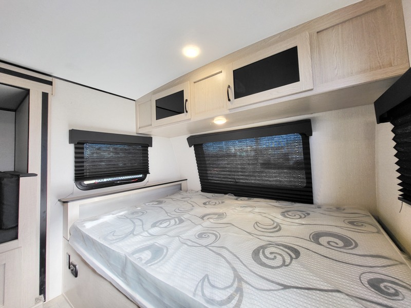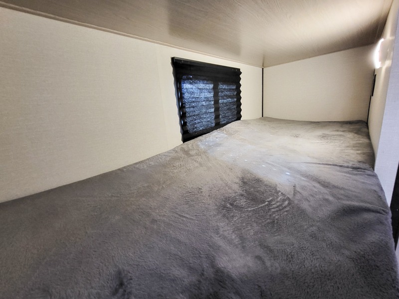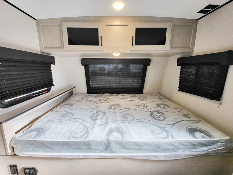 You will have more walking around space with a booth dinette slide in this travel trailer! The chef will love cooking indoors with the two burner cooktop, microwave, and 6 cu. ft. gas/electric refrigerator, as well as outdoors with the exterior camp kitchen. Start each morning feeling clean and refreshed after sleeping on the front queen bed with a headboard and showering in the tub/shower inside the rear corner bathroom, plus the bathroom has a wardrobe to keep your towels close. The kids will love sleeping on the rear corner set of 30" x 74" bunk beds too!