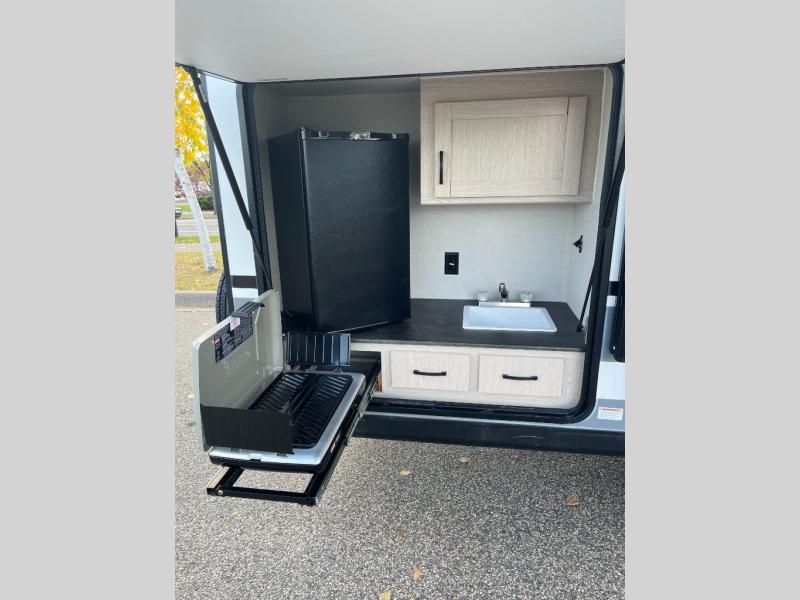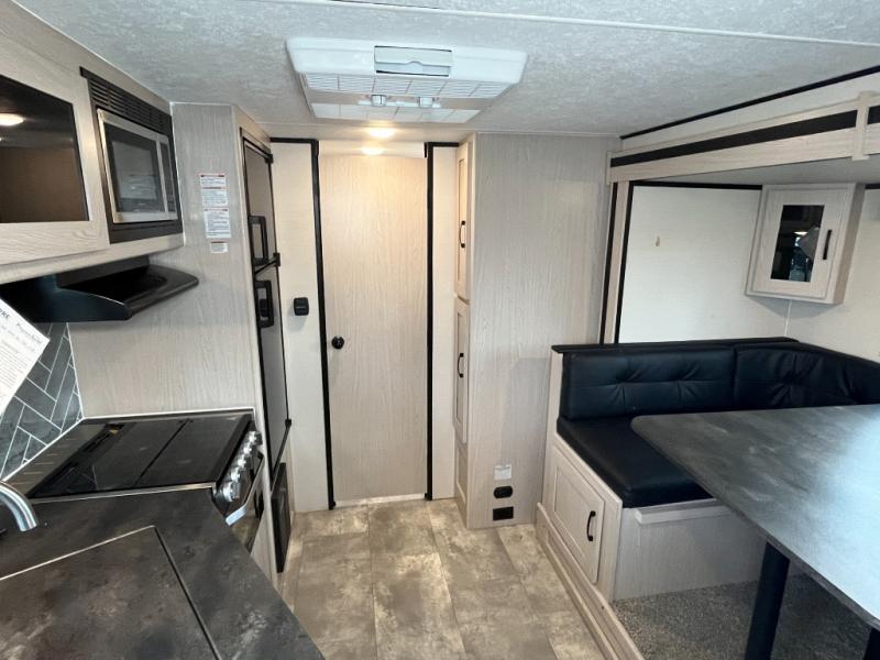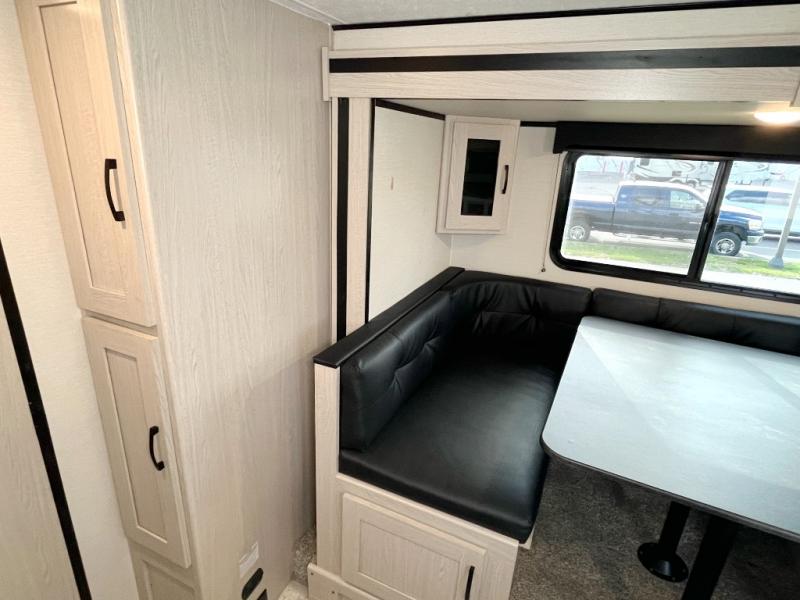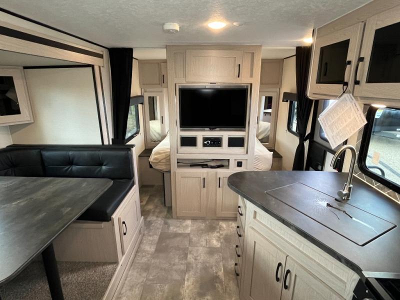 Easy to tow so you can get up and go! The U-shaped dinette slide will not only be a favorite spot to dine and play game, but will also double as additional sleeping space. There is a full interior kitchen, plus an outdoor kitchen for breakfast outdoors. When you're ready to come in for the night, head to the spacious full rear bath to clean up, and the front bedroom will make this unit feel more like home with its queen bed and dual wardrobes!