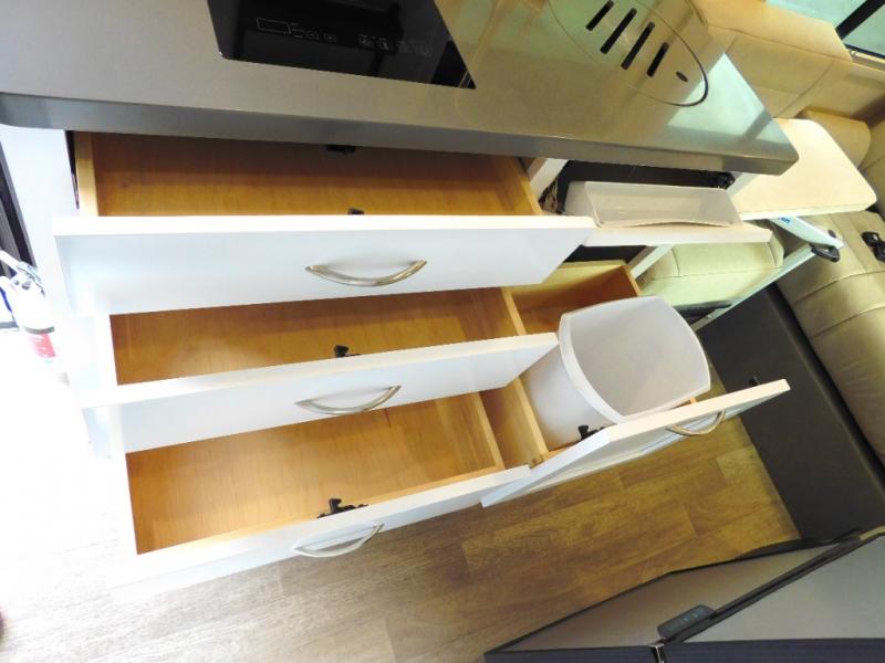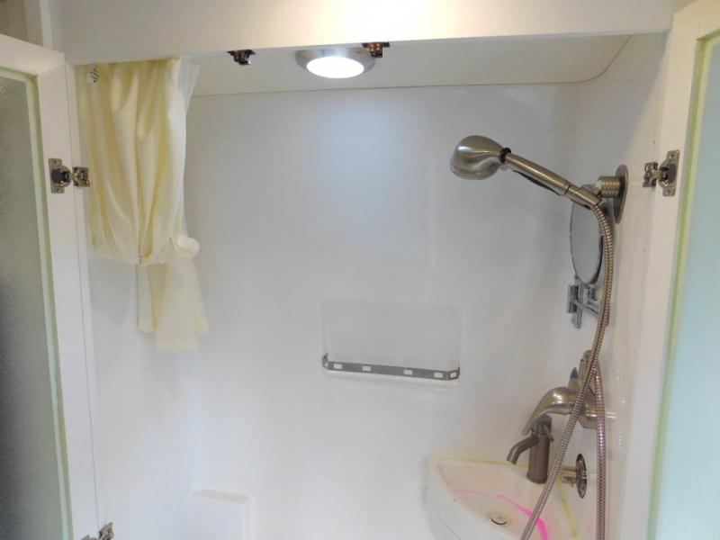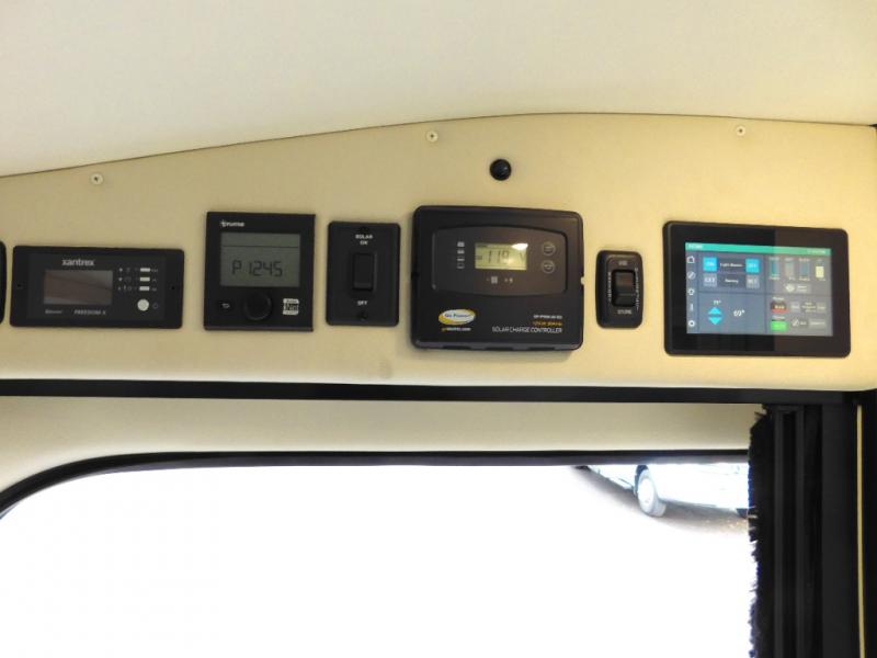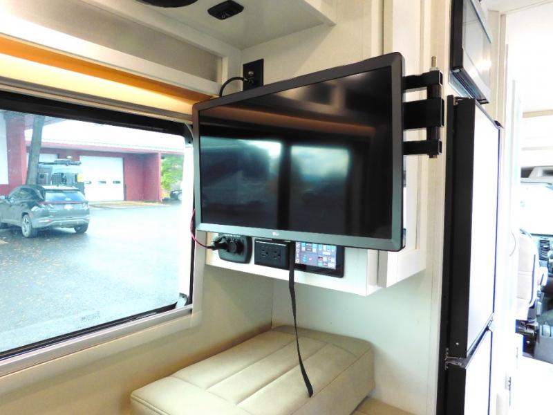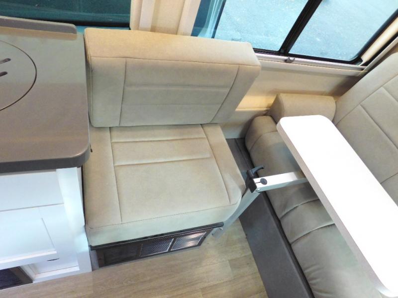 This all-wheel drive coach is perfect for trips near and far. Once you park, you can swivel the captain's seats around to enjoy lunch at the removeable table, and you can freshen up in the convenient wet bath before heading out to stretch your legs. There is a two burner LP cooktop, a round sink, plus a Nova Kool compressor refrigerator for your perishables. The two jump seats and rear power sofa will convert to a comfortable bed at night, and the lagun table in between will allow you to play a game of cards before bed. And don't worry about storage space since this model includes overhead compartments and a wardrobe to keep your clothes wrinkle-free!
