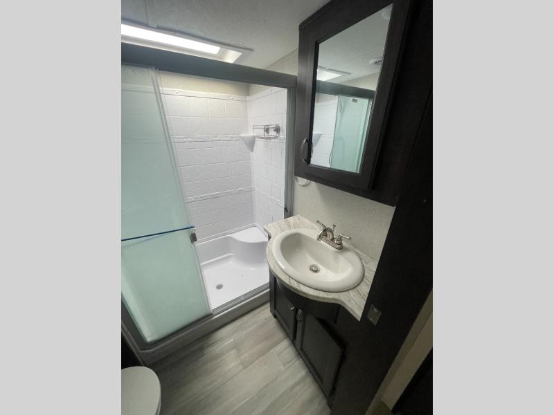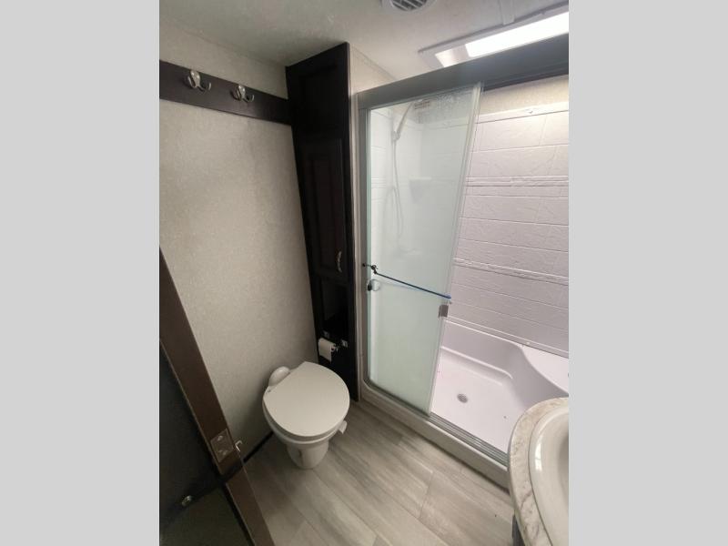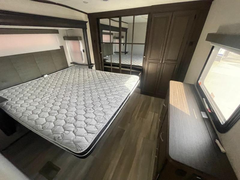 The Brookstone fifth wheels by Coachmen are coming to you with wide-body comfort, home-like amenities, and unique designs for a truly luxurious RV. The 4 Season Protection Package includes double batten insulated roof with radiant barrier insulation, Weather Shield+, a 40,000 BTU high capacity furnace, and more that will help you extend your camping season or go full-time. The frameless automotive-style windows feature 80% privacy tint safety glass, and the vacuum bonded and aluminum framed sidewalls with rot proof Azdel will provide durability. Head inside to find solid hardwood drawers, granite/marble style solid surface countertops in the kitchen, a residential bed with a pillow top mattress and full storage underneath, and the list of comforts goes on! The Brookstone also includes 6-point electric auto-leveling, marine-grade exterior speakers with an LED light, four Solid Step entry steps, and many more exterior conveniences!