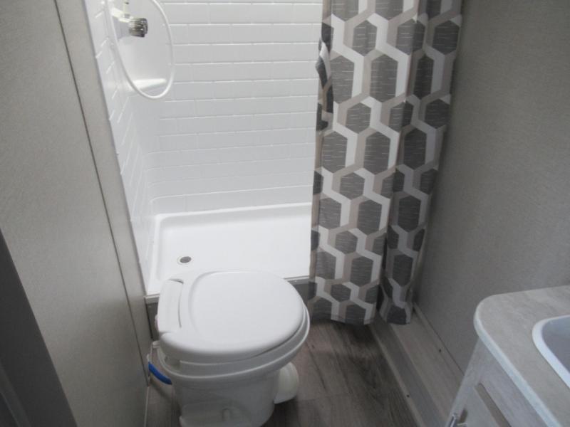 With any Catalina Legacy Edition travel trailer by Coachmen, there is an enclosed, fully sealed underbelly to protect against road debris and help control the interior climate, a seamless Alpha roof membrane, a platinum aluminum exterior, a smooth HD aluminum radius front, and polished HD aluminum fender skirts, plus upgraded aluminum wheels. The interior includes seamless Thermofoil countertops throughout, an under-mount farm style sink with residential kitchen faucet with pull down sprayer to easily clean the fruits and veggies as well as the dishes, full length kitchen drawer guides, and an All-In-One monitor panel system.
