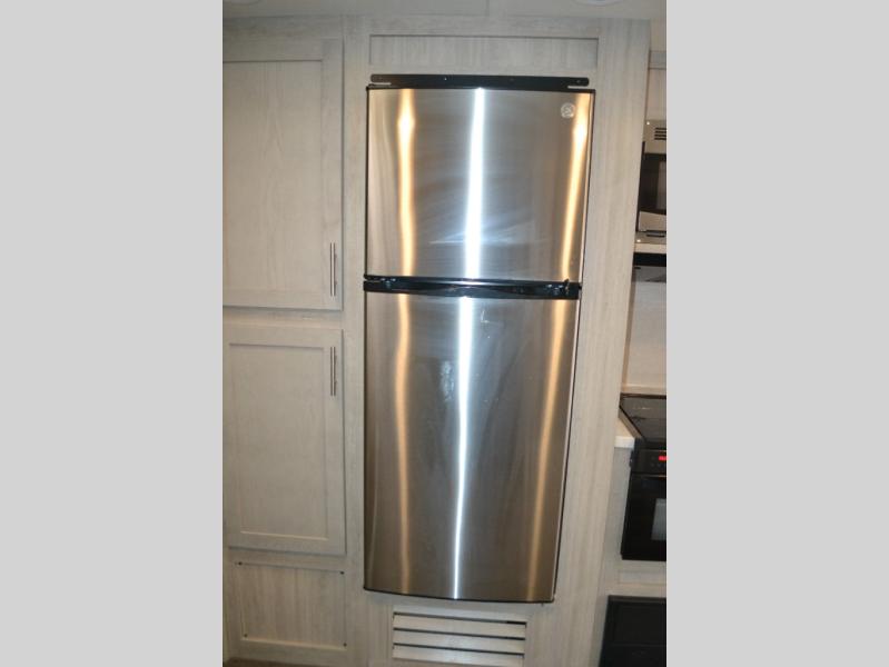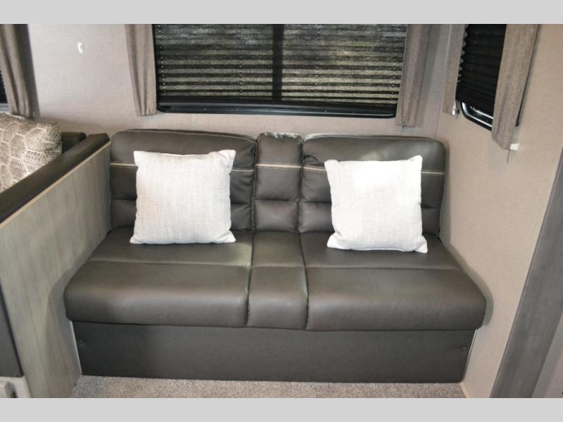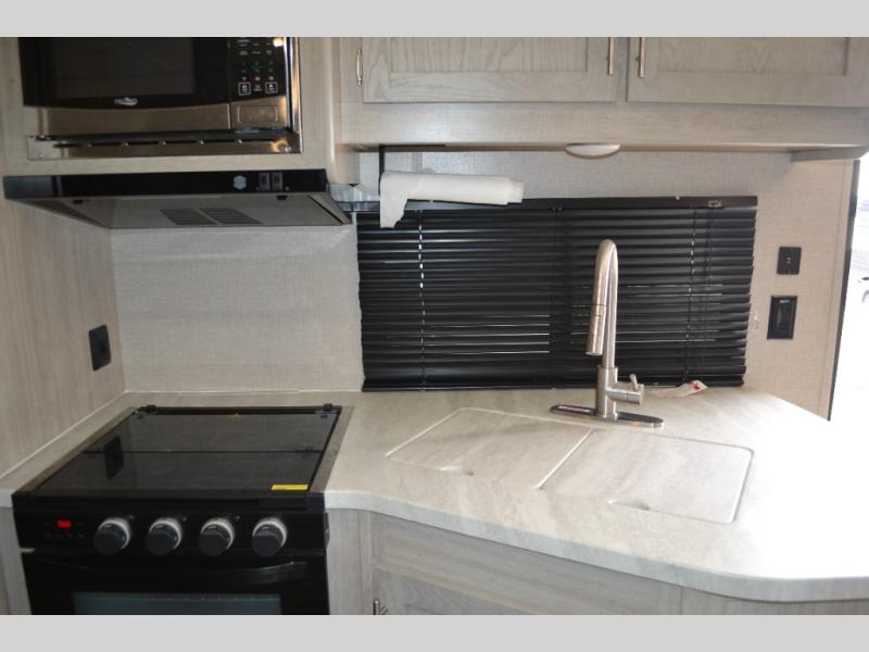 With any Catalina Legacy Edition travel trailer by Coachmen, there is an enclosed, fully sealed underbelly to protect against road debris and help control the interior climate, a seamless Alpha roof membrane, a platinum aluminum exterior, a smooth HD aluminum radius front, and polished HD aluminum fender skirts, plus upgraded aluminum wheels. The interior includes seamless Thermofoil countertops throughout, an under-mount farm style sink with residential kitchen faucet with pull down sprayer to easily clean the fruits and veggies as well as the dishes, full length kitchen drawer guides, and an All-In-One monitor panel system.