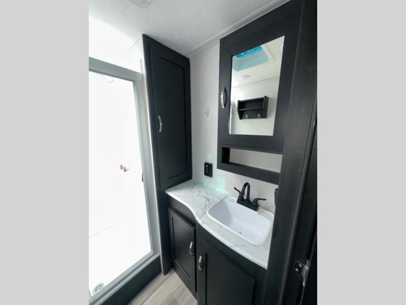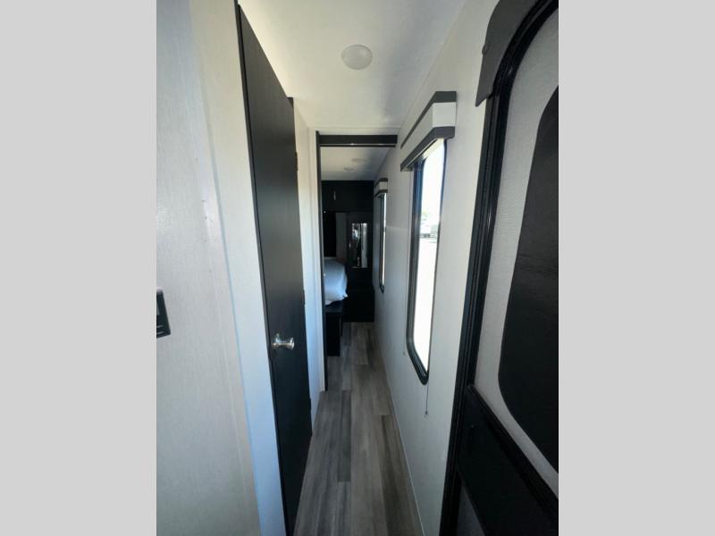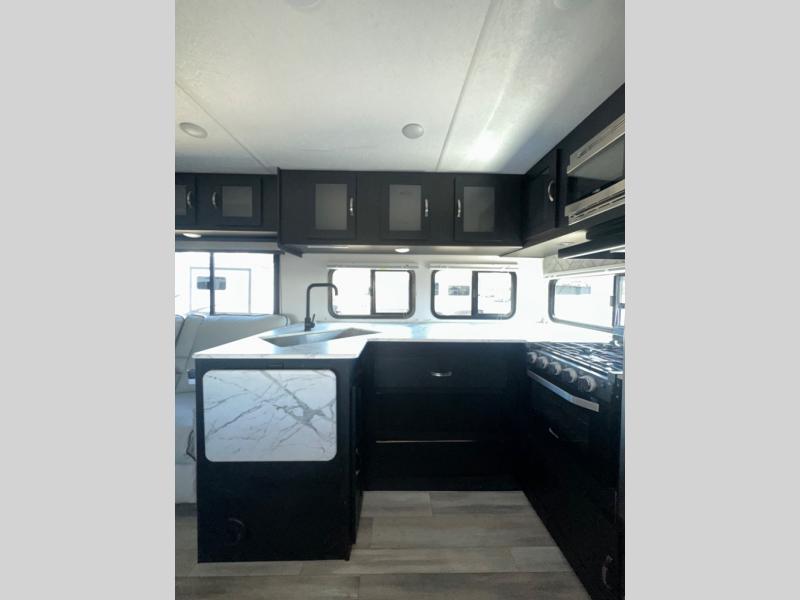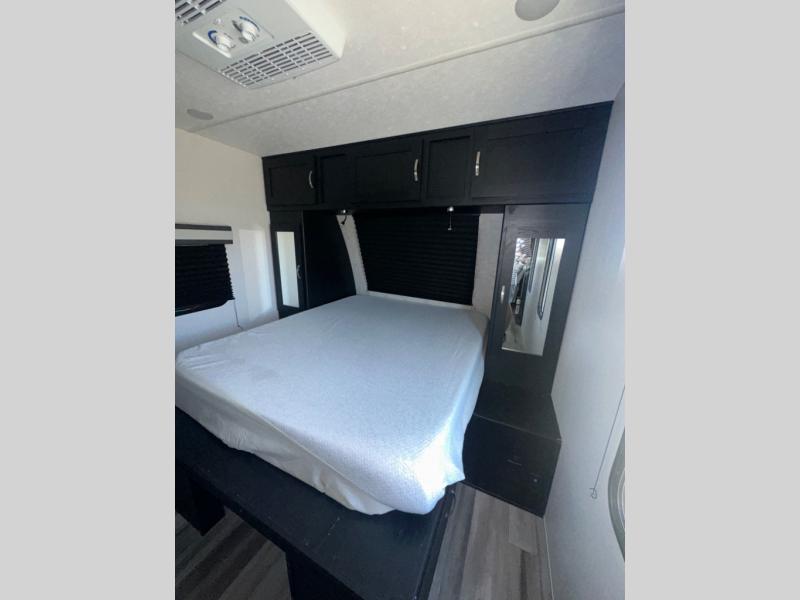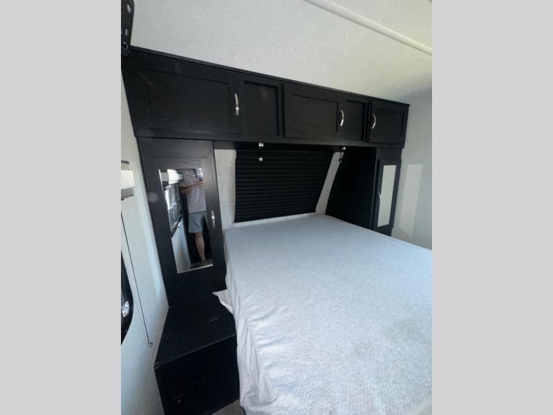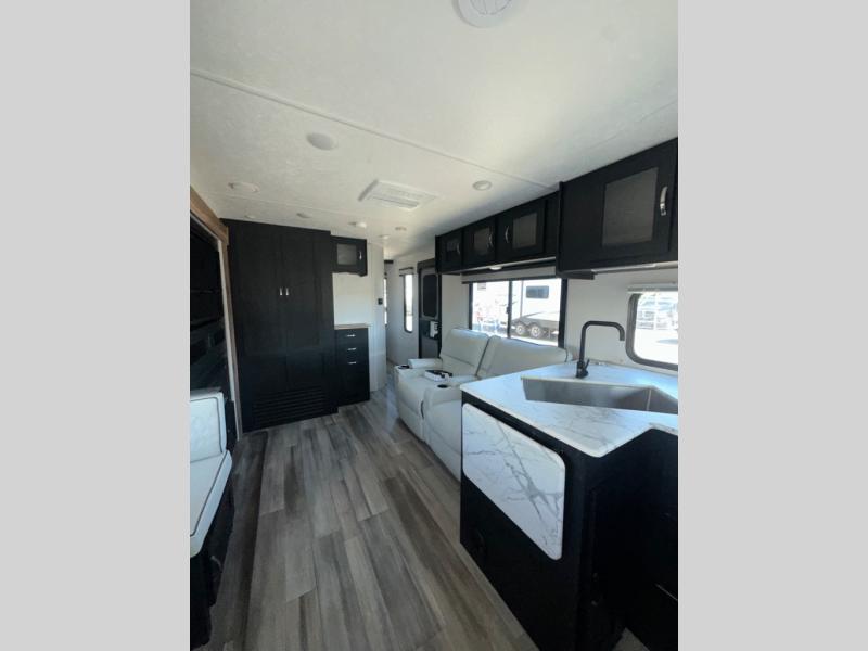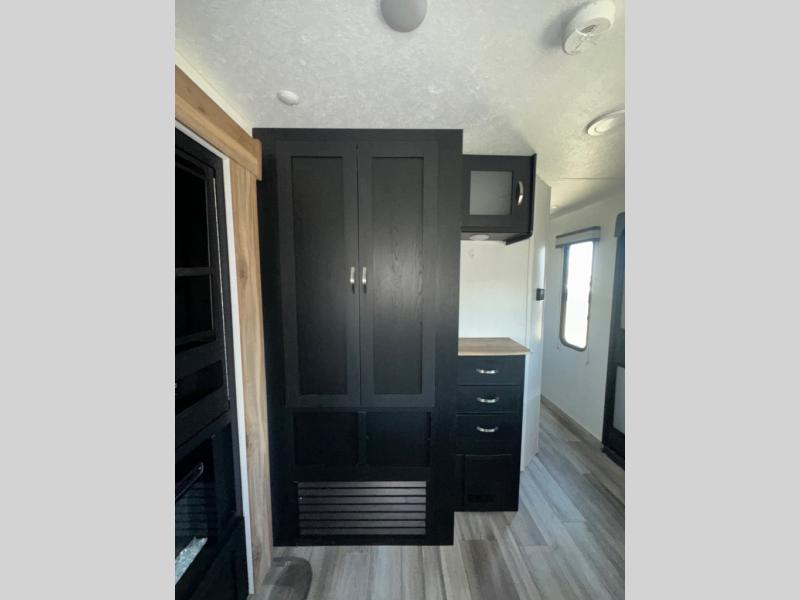 Are you looking for a travel trailer that will feel more like home? Look no further than this model that features a private bedroom up front, a full bath, plus a spacious rear kitchen. You will love to relax on the theatre sofa/hide-a-bed sofa across from the LED TV and fireplace, and there is a booth dinette for dining. If the weather is nice you may just want to sit outdoors under the 20' power awning with LED lights. The chef of your group can prepare a meal on the pull-out camp kitchen, and the kids can grab their scooters from the pass-through storage.