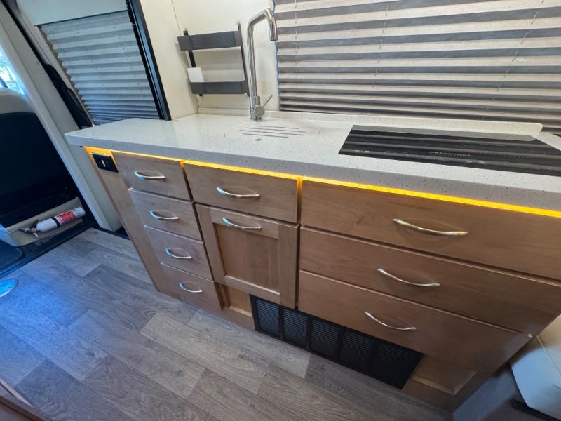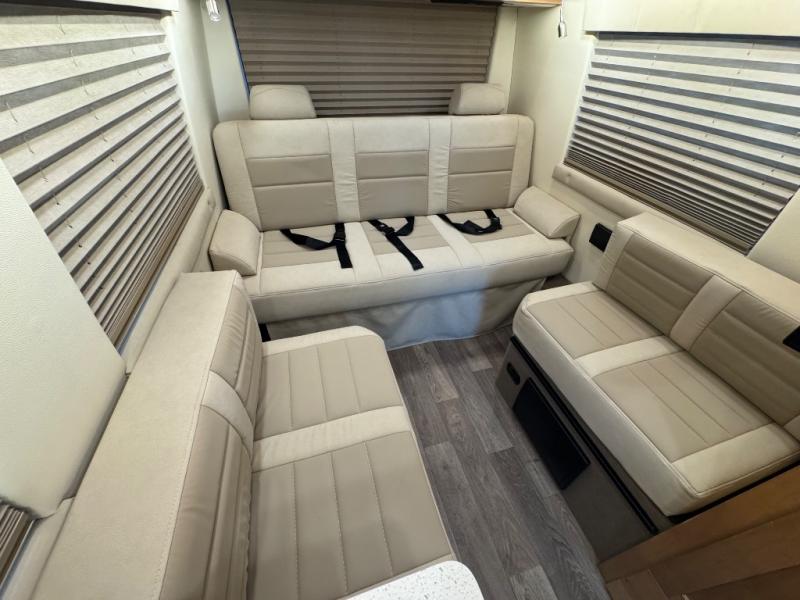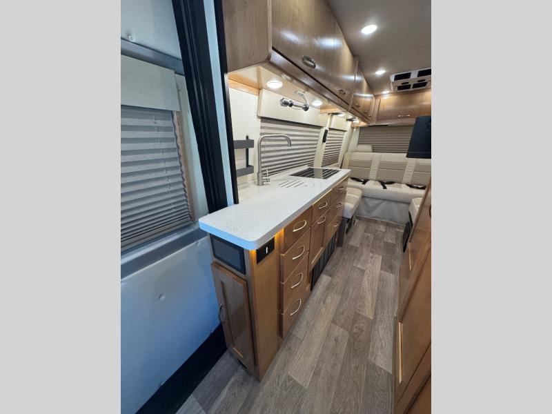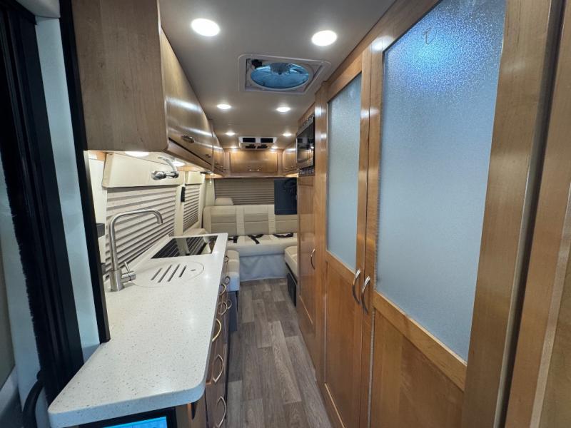 Built on the Mercedes-Benz Sprinter 3500 extended chassis with a 3.0L Turbo Diesel V6 and optional 4x4 capability, the Galleria Li3 combines refined performance with rugged confidence. The exterior exudes sophistication, while inside, handcrafted Amish maple cabinetry, solid-surface countertops, and premium Ultraleather seating create a warm, modern sanctuary.