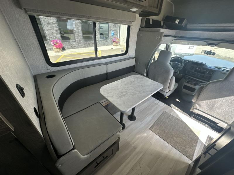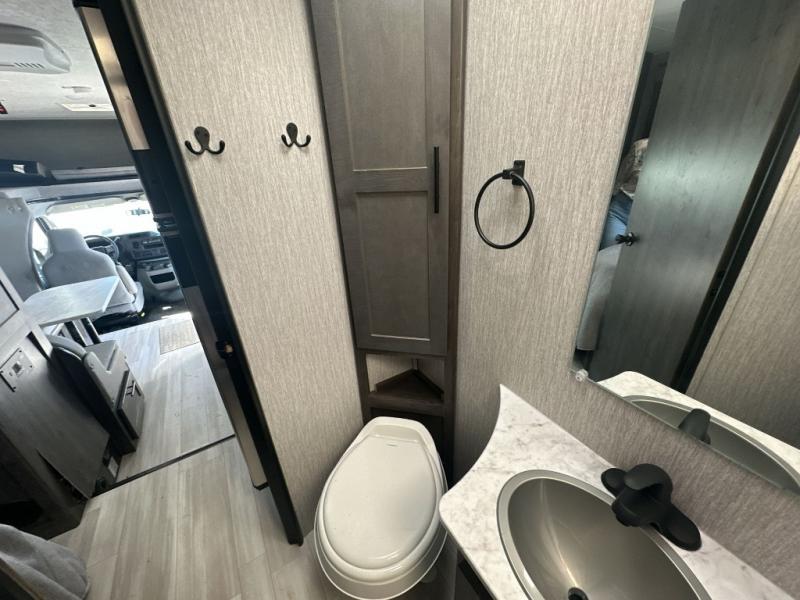 With each Leprechaun Class C gas motorhome by Coachmen you will enjoy "better" interior appointments, like the premium hardwood cabinet doors and drawer fronts, the one-piece thermofoil countertops, and the premium vinyl flooring. You will sleep soundly each night on the upgraded mattress, and staying clean will be easy with the premium showerhead and faucet in the bath. These models include reclining captain's seats, cruise control, and a rear backup camera so you can easily get in and out of the campground. The Leprechaun is constructed with Azdel composite sidewalls, CrossFlex PVC, polyester reinforced roof material, and vacu-bond laminated walls, roof, and floor for a durable motorhome made to last.