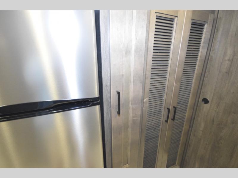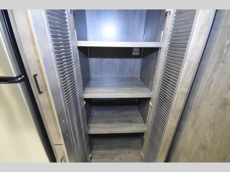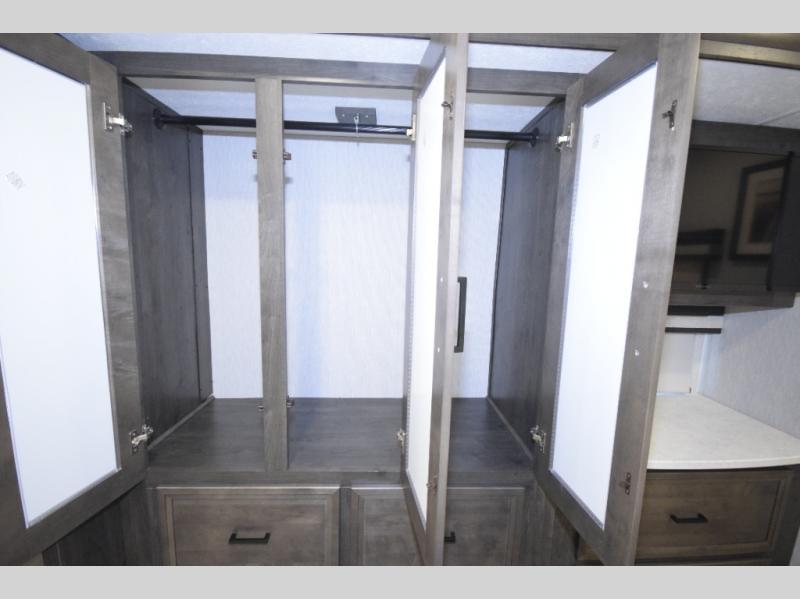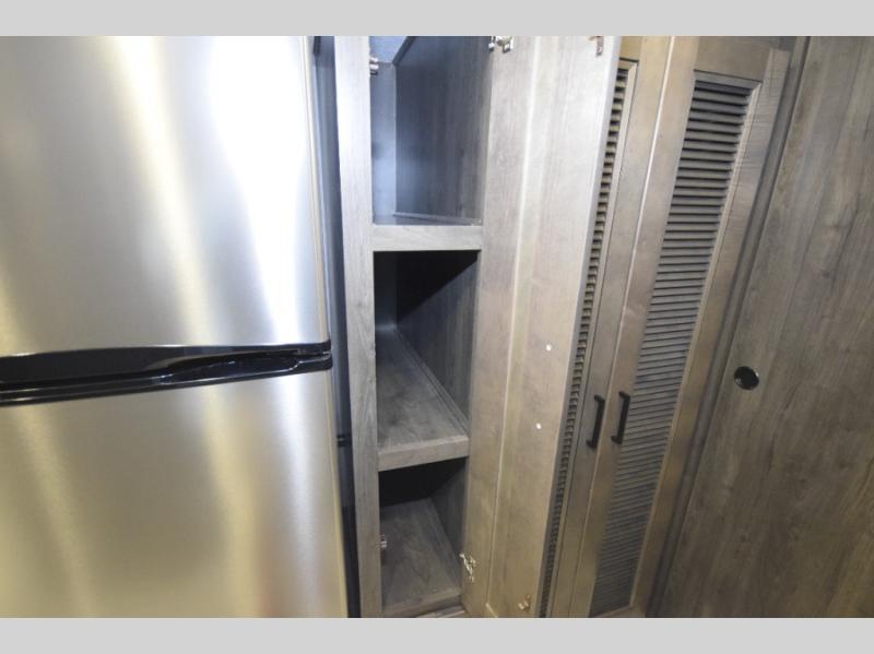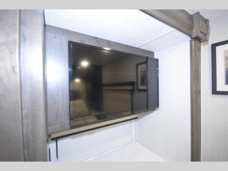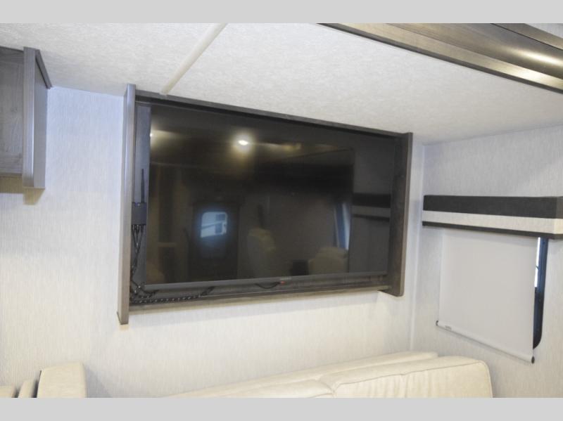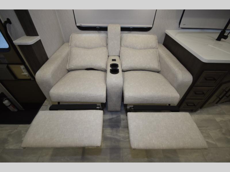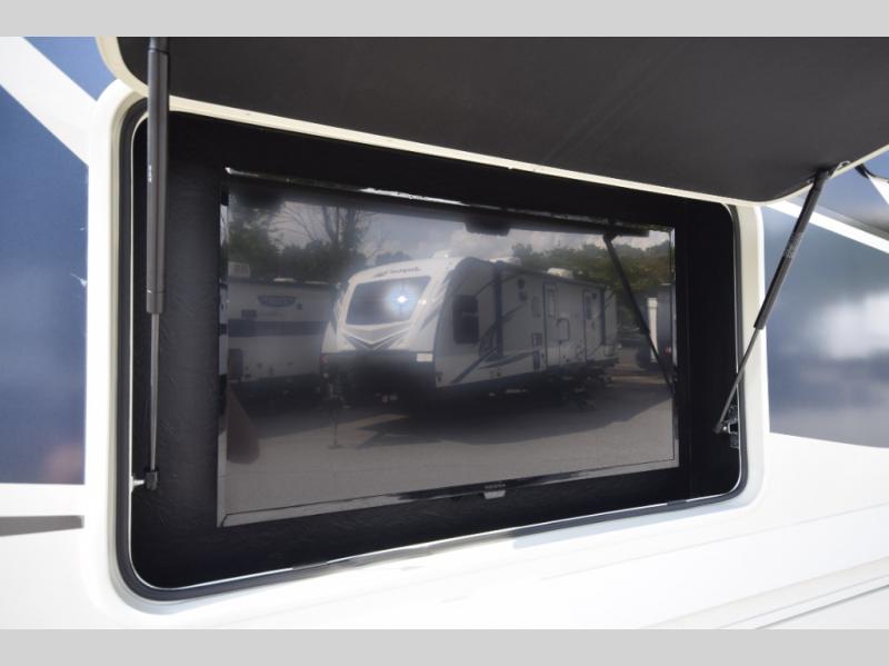 Thanks to the full-wall slide, the interior opens up to reveal an expansive living area where you and your crew can relax, dine, or entertain. Enjoy a movie night on the 50" LCD TV, kick back in the theater seating, or lounge on the sofa bed—perfect for extra guests. When the sun’s out, take the fun outdoors and catch the game on the exterior LED TV under the 20' power awning.