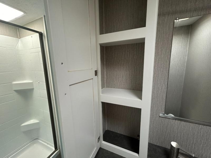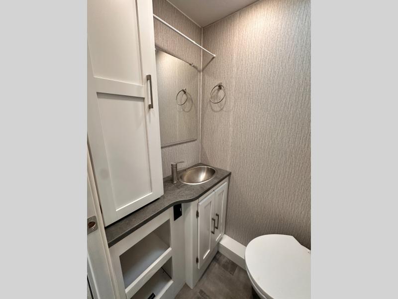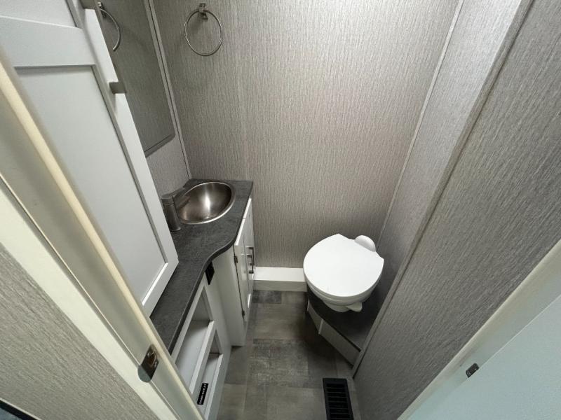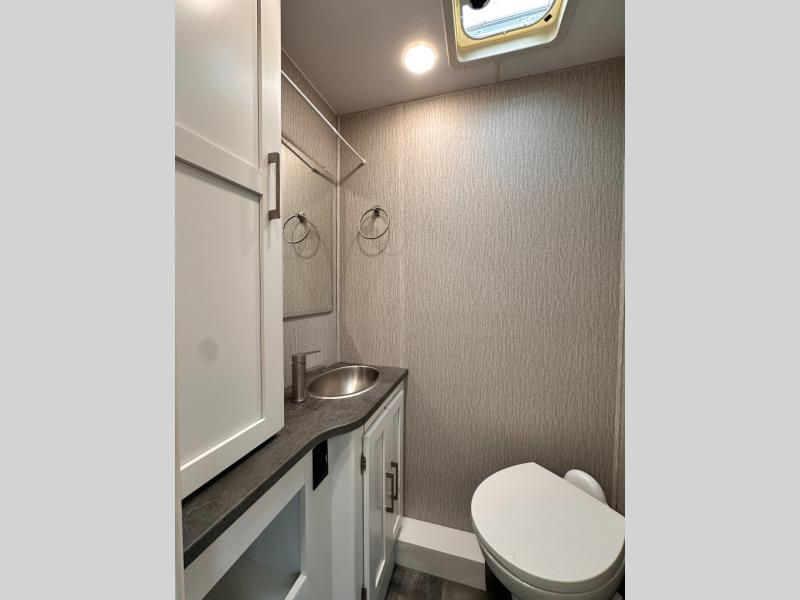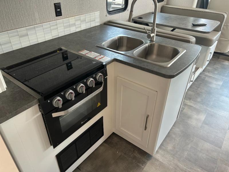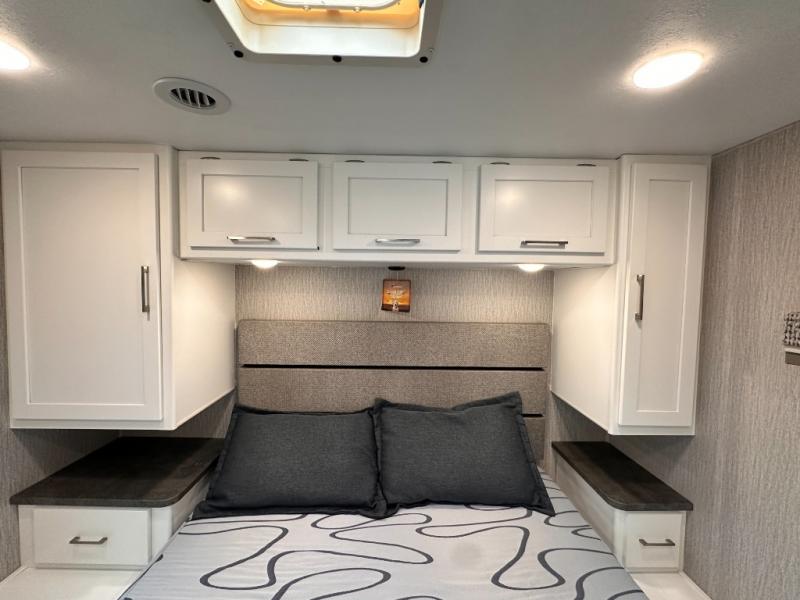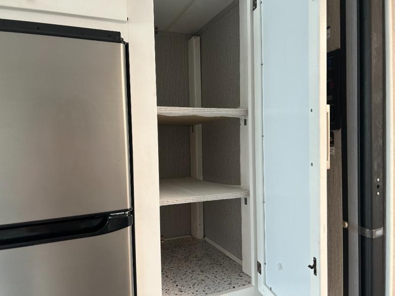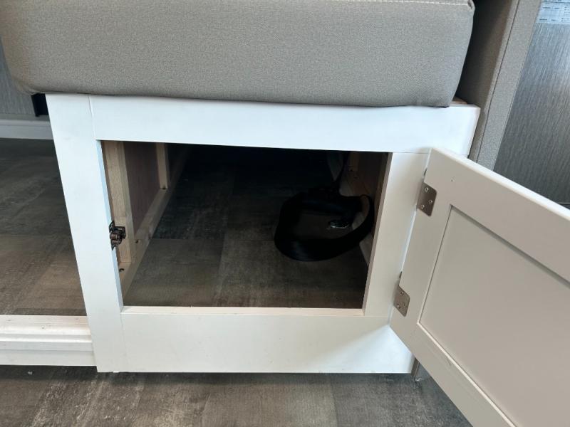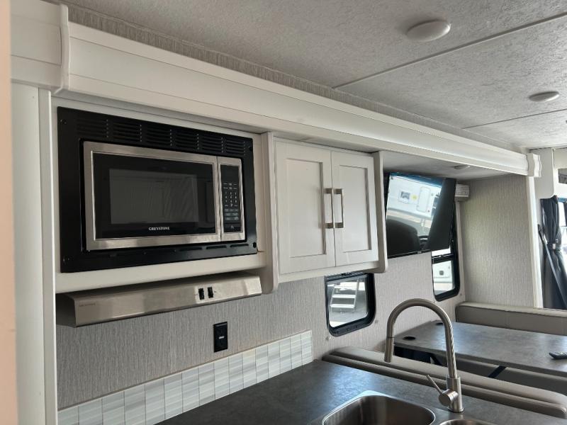 You won't want to travel any other way once you step inside this motorhome! The rear private bedroom has a 60" x 74" queen bed to lay your head on at night with wardrobes on either side of it for your clothes. A separated bathroom makes it easy for one person to freshen up in the 24" x 32" shower while another uses the private toilet and sink. Enjoy home cooked meals while out on the road with the stainless steel three burner cooktop, the stainless steel double door 10 cu. ft. refrigerator, and even the stainless steel microwave oven. Eat your meals, play card games, and even transform the 42" x 72" booth dinette into an extra sleeping space. The 63" sofa has storage below for an extra blanket or board games. If you need to get some work done while you're away then you will appreciate the computer work station with 12V, 110V, and USB outlets in front of the passenger chair!
