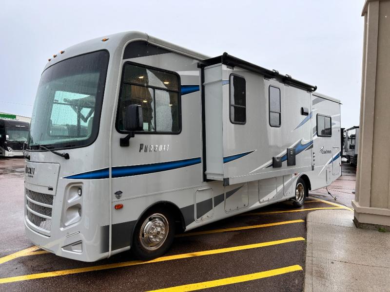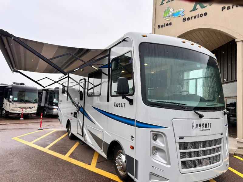 Pursue big dreams with one of these Coachmen RV Pursuit Class A gas motorhomes! The high gloss dove grey sidewalls with Azdel superlight composite, fiberglass front cap, and crowned, laminated TPO roof will hold up for years to come. A Ford F53 7.3L V8 engine propels your unit with an abundance of power to each destination. Stay warm in the cooler months with a 30,000 BTU furnace and stay cool in the warmer months with the 15,000 BTU A/C. All of your extra gear can easily be stored in the spacious exterior storage compartments to keep from taking up space on the inside. The exterior propane hook-up will come in handy and you can crank up the tunes with the exterior Bluetooth, plus some models even have an outside entertainment center with a TV. Come find the right one for you today!