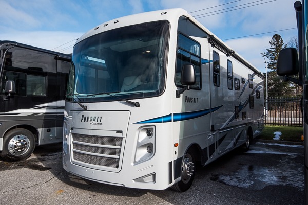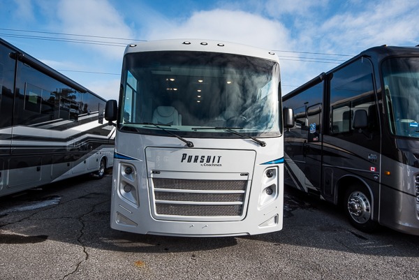 Pursue big dreams with one of these Coachmen RV Pursuit Class A gas motorhomes! The high gloss dove grey sidewalls with Azdel superlight composite, fiberglass front cap, and crowned, laminated TPO roof will hold up for years to come. A Ford F53 7.3L V8 engine propels your unit with an abundance of power to each destination. Stay warm in the cooler months with a 30,000 BTU furnace and stay cool in the warmer months with dual 15,000 BTU A/C units. All of your extra gear can easily be stored in the spacious exterior storage compartments to keep from taking up space on the inside. The exterior propane hook-up will come in handy and you can crank up the tunes with the exterior Bluetooth, plus some models even have an outside entertainment center with a TV. Come find the right one for you today!
