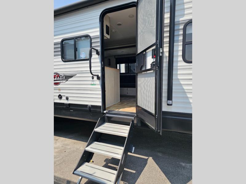 Pre-Owned 2022 Shasta RVs Shasta 31OK Travel Trailer – Bunkhouse Comfort with Outdoor Kitchen & Entertainment!