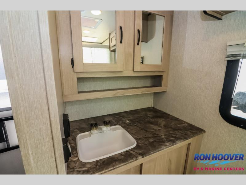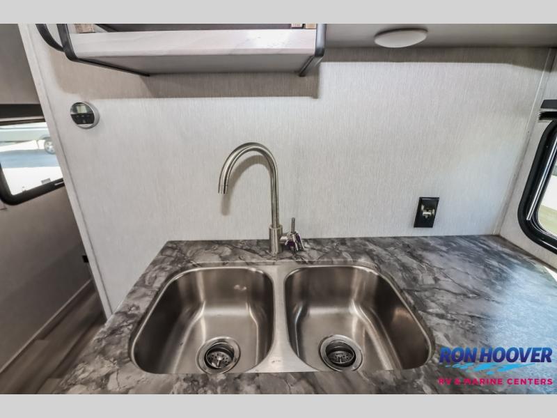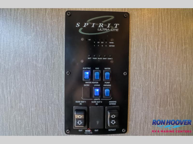 You'll want to stay a little longer when you stay in this Spirit Ultra Lite travel trailer! There is a large slide that you can use to add space to your trailer, and the slide out holds the sofa and U-shaped dinette so that you can lounge without the worry of being in the middle of the walkway. The hinged entertainment center can open up to reveal a closet and pantry, and there is a pet center where your puppy can eat his meals. The kitchen is made more functional with the flip-up countertop extension, and you'll find a little extra privacy by having a rear bathroom.
