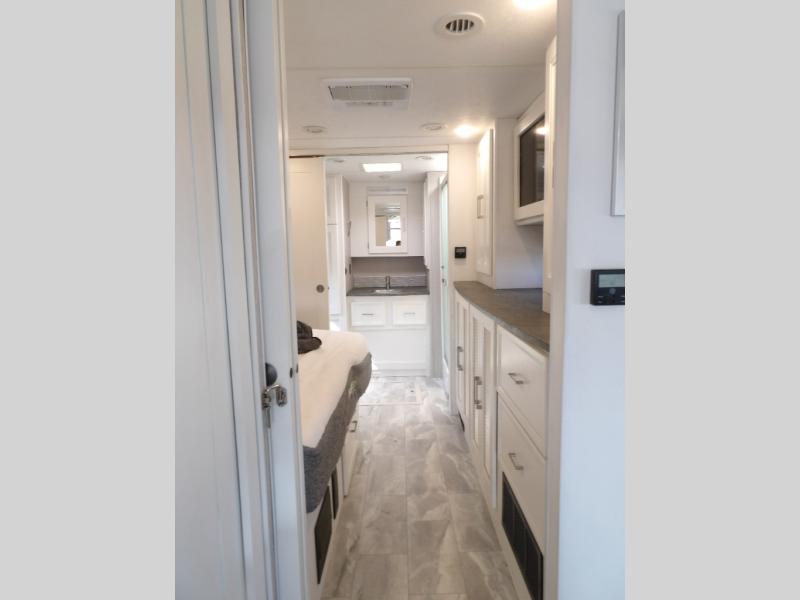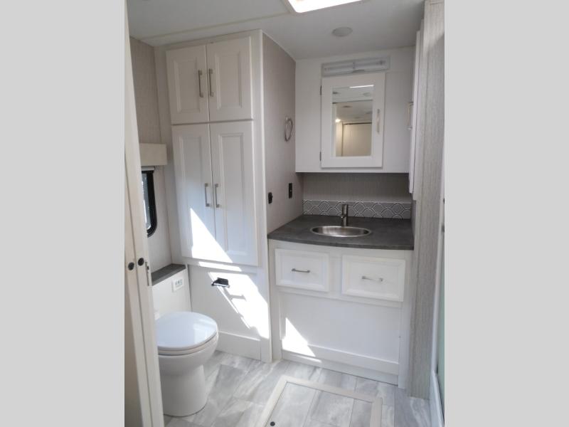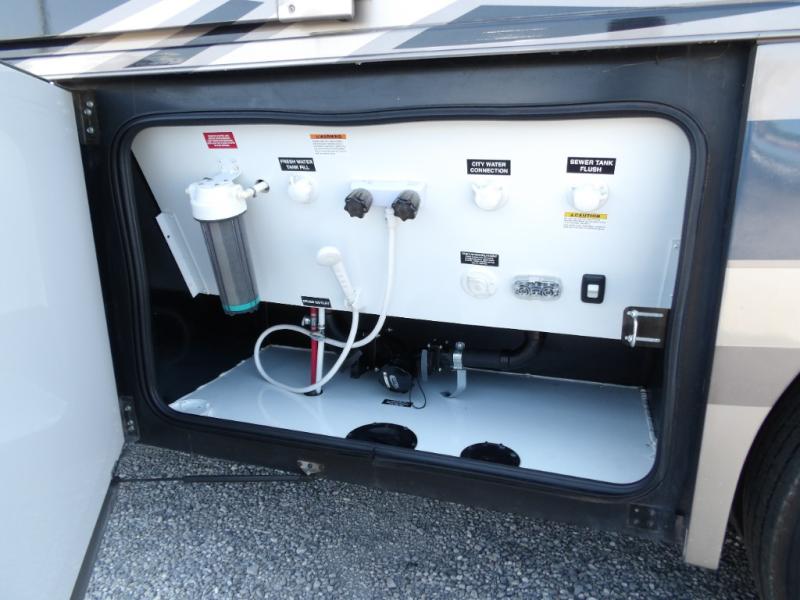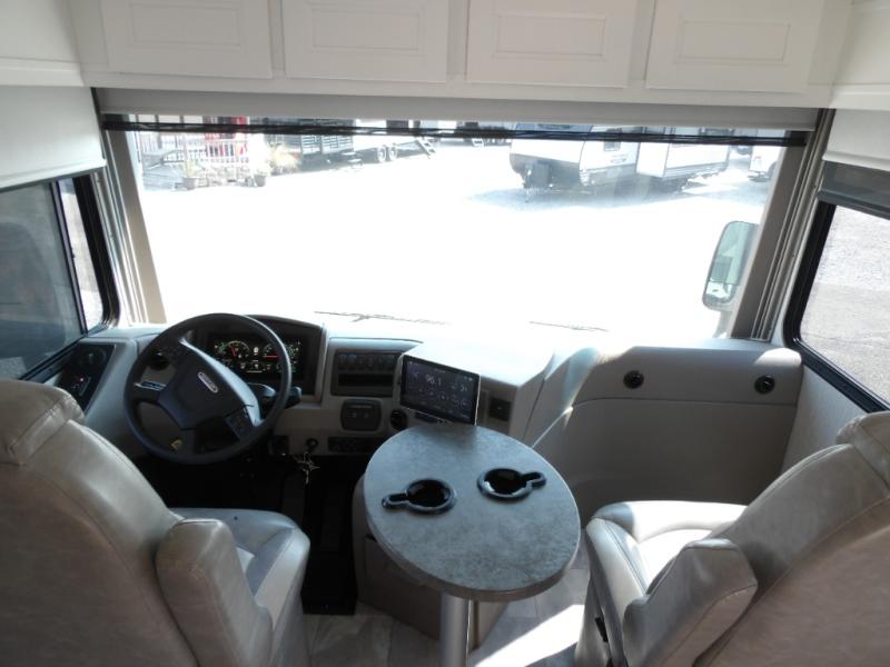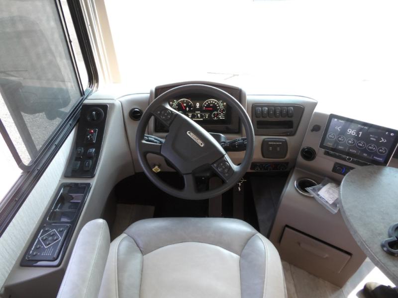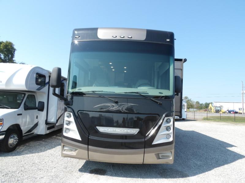 The Sportscoach SRS Class A diesel motorhome by Coachmen sits on a straight rail Freightliner chassis with a 340 HP ISB Cummings rear diesel engine that will deliver power to your excursions. Each coach features chassis air suspension and air brakes, an 8,000 lb. towing hitch, and an outside entertainment center with a 40" TV to watch the big game outdoors. Some of the electrical, heating, and AC amenities you will appreciate are the 6.0 kW diesel generator, the 100 watt solar panel with a controller, and the two 15,000 BTU A/C units. The galley features convenient pop-up recept with USB ports, stylish kitchen backsplash, and a stainless steel farmhouse style sink that will make clean-up easier than ever. Comfort will come easy with the upgraded mattress in the bedroom, along with a residential style headboard and a king bed. Affordable, powerful, and comfortable; what's not to love about the Sportscoach SRS Class A diesel coach!