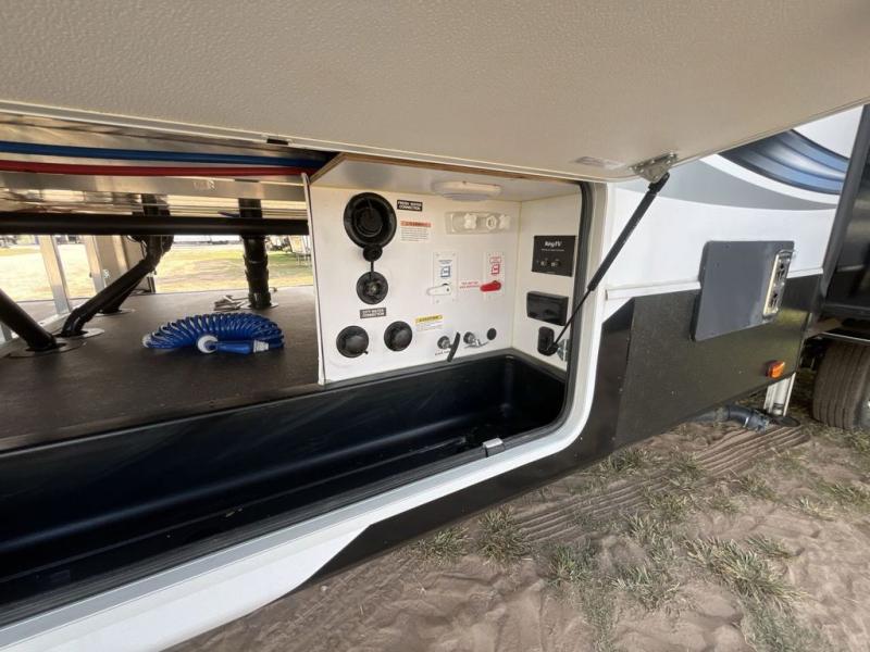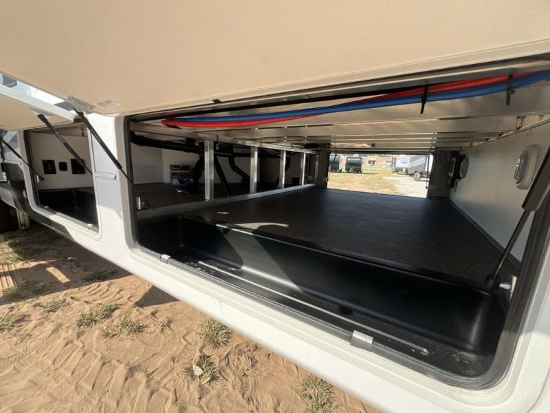 Every element of your home has been considered when creating these CrossRoads RV Cameo fifth wheels! From the oversized pantries, master suites, and full size theater seats with heat and massage to durable construction with the largest I-beam chassis in the industry. They also have the industry's first front windshield, an aerodynamic profile, and a full walk-on roof with an Alpha Ply II roof material. These modern fifth wheels were created with the customer in mind which is why they have convenient features like pass-through heated storage, spacious walk-in closets, an AM/FM/Bluetooth sound bar, a 6-point hydraulic auto level, and a 2" receiving hitch with 4-way plug. The Twice Is Nice package adds even more comforts like dual fireplaces for cozy evenings inside, dual awnings to protect you rain or shine, dual A/C units to keep you cool on those hot summer days, and dual wireless charging stations so your electronics can be at 100%. Come find the right model for you!
