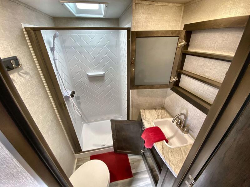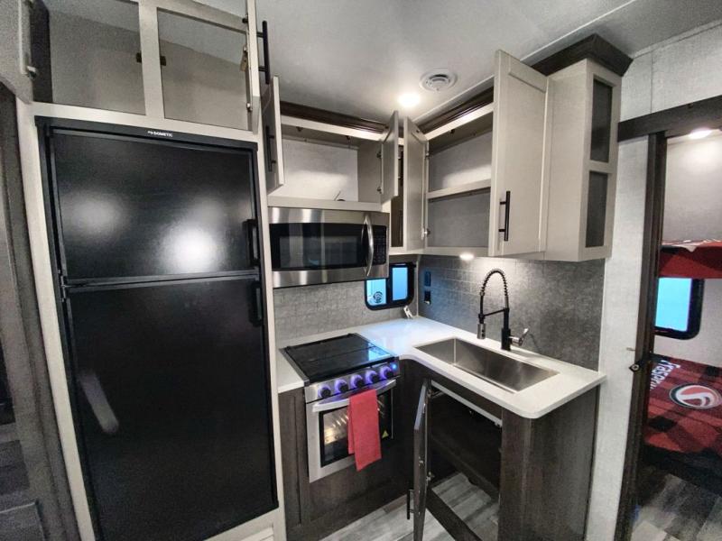 Each one of these CrossRoads RV Cruiser Aire fifth wheels and travel trailers have high end features incorporated into them! Some of these features include a Secure Stance entry step, pass-through storage with magnetic slam latch doors to keep your gear stored safely, and electric awnings with LED lights to highlight the good times at night. Their construction consists of a one piece seamless super flex roof, a five sided aluminum construction, and an aerodynamic painted front cap for an easier tow. Stay connected where ever you go with the HD digital TV antenna with Winegard Wifi prep. The luxurious interiors are filled with at home comforts like Chef Collection appliances, full trunk storage under the king bed, and fireplaces depending on the model. Come find the perfect one for you and your family today!