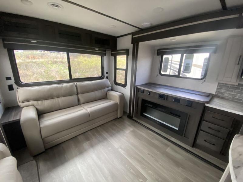 Each one of these CrossRoads RV Cruiser Aire fifth wheels and travel trailers have high end features incorporated into them! Some of these features include a Secure Stance entry step, pass-through storage with magnetic slam latch doors to keep your gear stored safely, and electric awnings with LED lights to highlight the good times at night. Their construction consists of a one piece seamless super flex roof, a five sided aluminum construction, and an aerodynamic painted front cap for an easier tow. Stay connected where ever you go with the HD digital TV antenna with Winegard Wifi prep. The luxurious interiors are filled with at home comforts like Chef Collection appliances, full trunk storage under the king bed, and fireplaces depending on the model. Come find the perfect one for you and your family today!