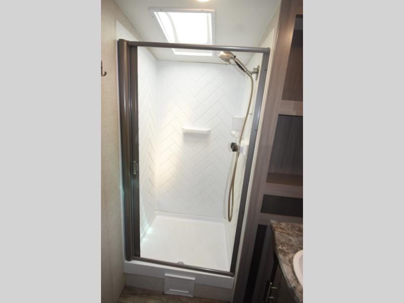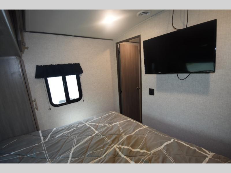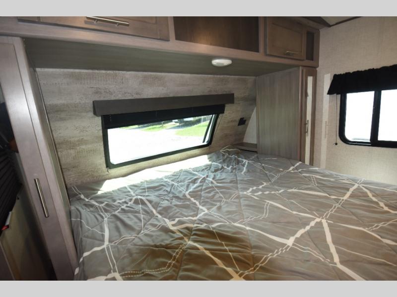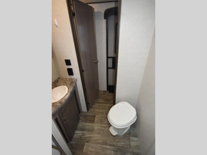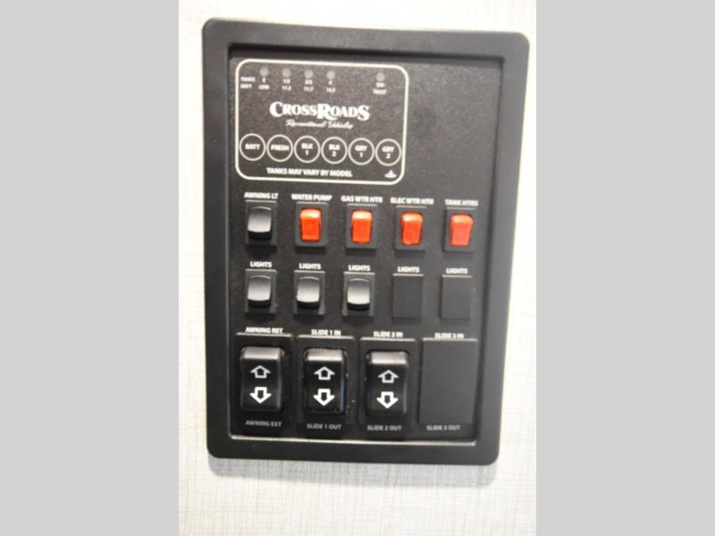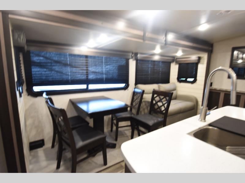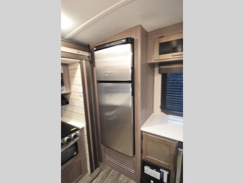 With any Sunset Trail travel trailer by CrossRoads RV, the interior offers a stainless steel farmhouse single bowl sink with a cover, solid surface countertops in the kitchen, a 12 volt refrigerator, USB ports in the bedroom and main area, and a Connexx entertainment TV with soundbar for inside enjoyment. Also included is the Extreme Weather package with maximum insulation with reflective foil, a 30,000 BTU furnace, and a 2" heat duct in the enclosed underbelly for four seasons of traveling. And the Blade Air system offers 20% more airflow and re-engineered components on the A/C. The HyperDeck flooring is water resistant, fiberglass reinforced and has polypropylene layers. Make your lightweight and comfortable RV decision today!