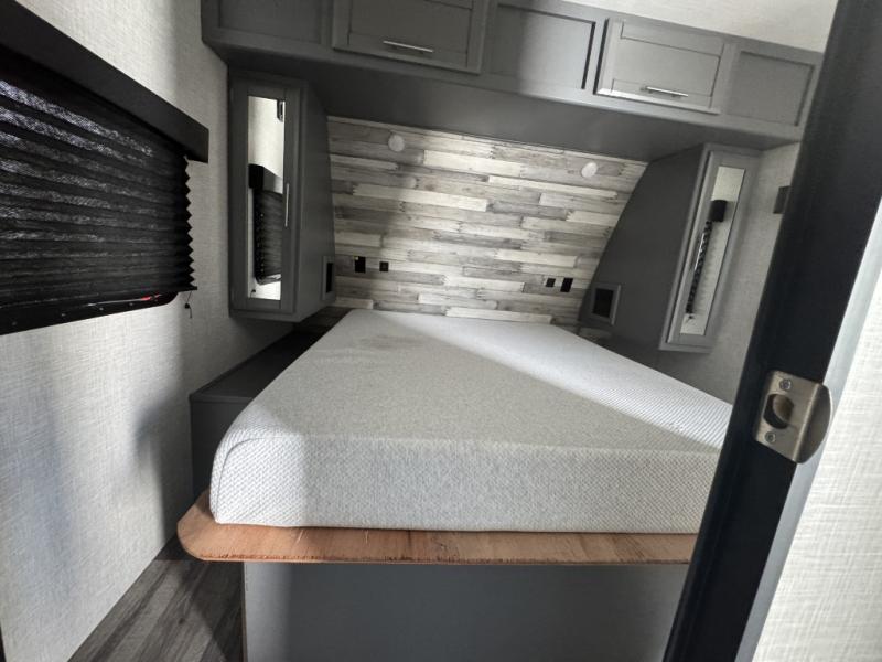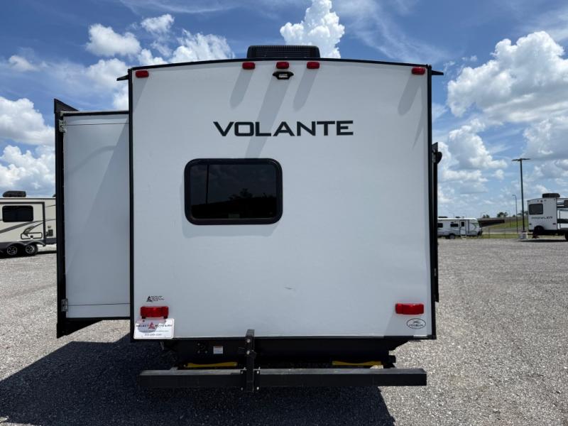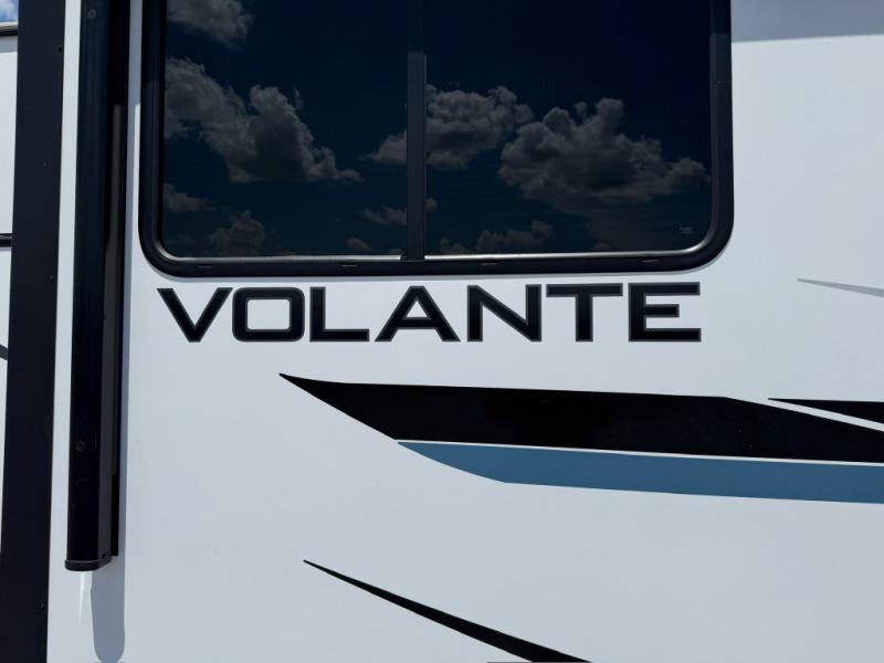 Each Volante fifth wheel or travel trailer by CrossRoads RV includes features and options that will enhance your camping experience. The fiberglass front cap is sure to be eye-catching, and you can plan to camp year around with the fully enclosed and forced air heated underbelly. There is also an outside shower, an electric awning with LED lights, outdoor speakers with LED accents, plus many more exterior conveniences. The interior of each Volante will have you feeling right at home with premium residential furniture, coordinating window treatments in the bedroom, nightstands with outlets in the bedroom, plus USB ports to keep your electronics charged. You will also appreciate a 13,500 BTU A/C, plus solar power prep and WiFi prep if you need to get some work done while you're away from home.