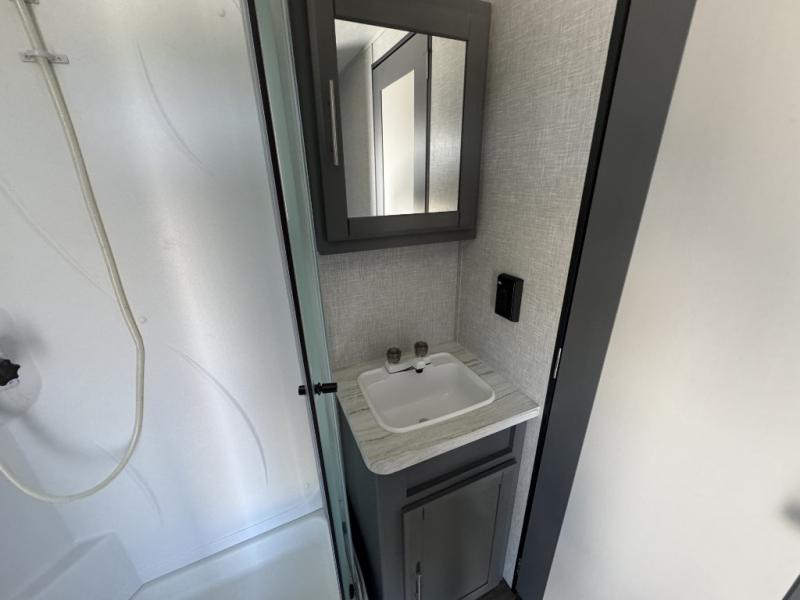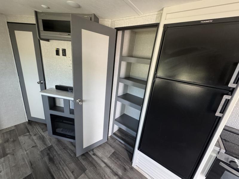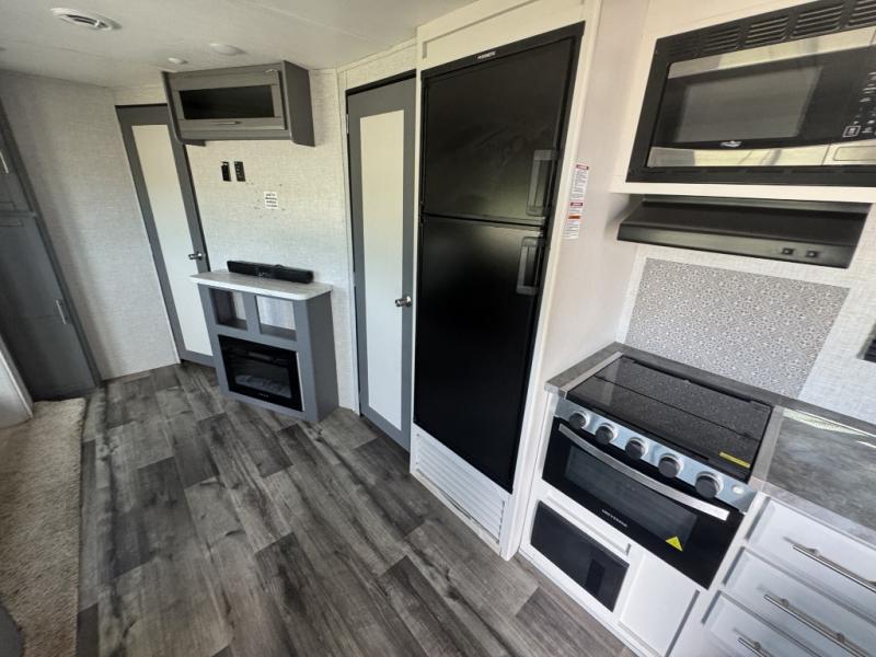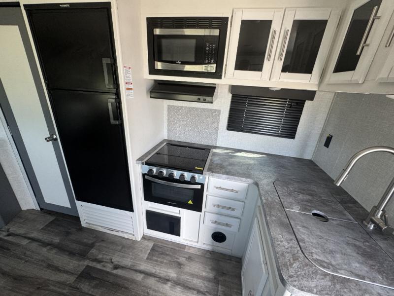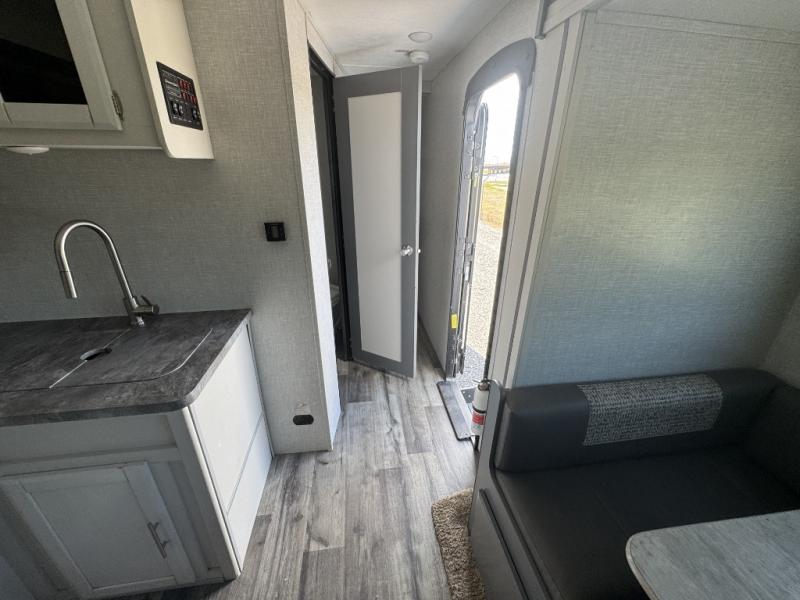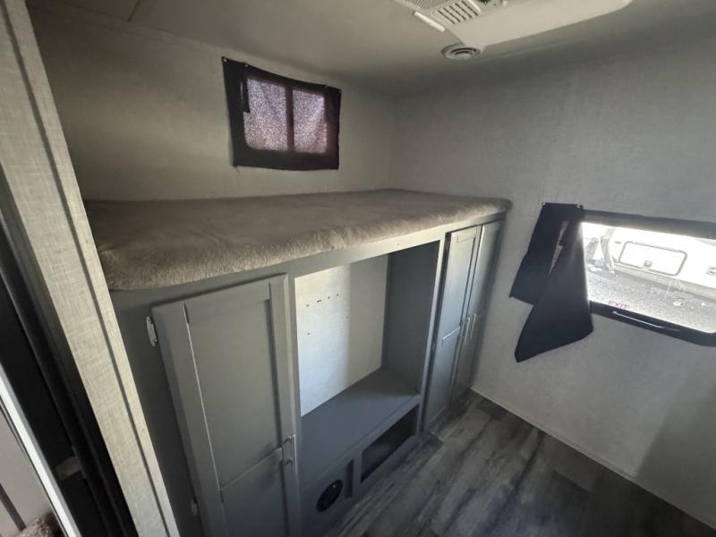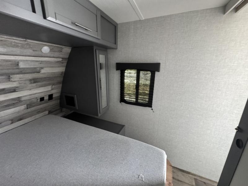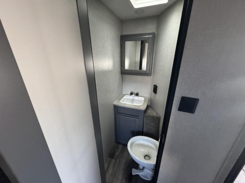 A front master bedroom for you and your spouse, plus a rear private bunkhouse with a half bath make this travel trailer perfect for a large group. Within the large slide out you'll find a U-shaped dinette and a tri-fold sofa, and there is a second slide out in the bunkhouse for added space. The chef of the family can choose to cook indoors or outdoors on the outside kitchen, and the power awning with LED lights will create an inviting space. This model also includes plenty of storage, including two pantries, dual shirt closets in the master bedroom, plus overhead compartments throughout!