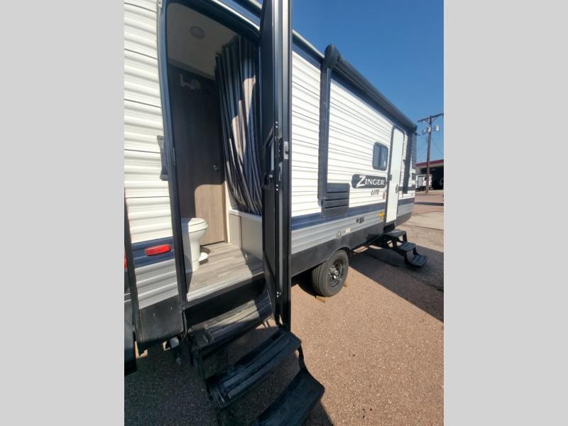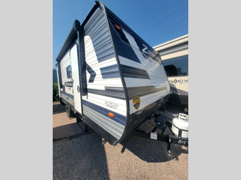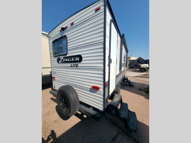 Join the CrossRoads family with a Zinger Lite travel trailer! You'll enjoy an abundance of standard features you would usually find with higher priced travel trailers. Each model features an aerodynamic front end for a more sleek look and better wind resistance when towing. You will appreciate the molded rain gutters with 3" drip spouts, plus Secure Stance entry steps and Keyed-A-Like doors. Having an AM/FM stereo with a Bluetooth soundbar will allow you to listen to your favorite tunes as you camp, and there are outdoor speakers with LED accents if you plan to take the party outdoors. The Zinger Lite also features a 81" interior ceiling height, generous storage space, plus popular options that can be added to further customize your RV. Choose yours today!