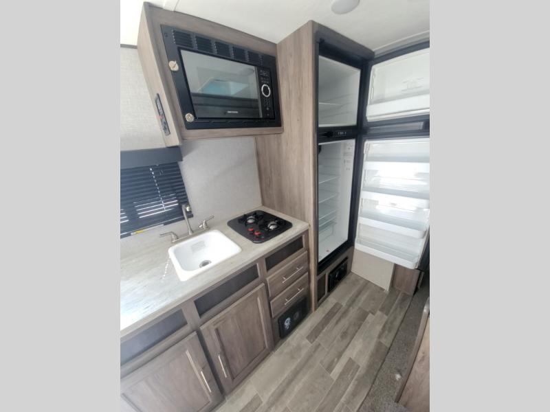 Step inside this Zinger Lite travel trailer and experience fun at its best. You can easily tow this unit with an SUV or minivan which gets you on the road in no time! You will love a good night's rest on the RV queen bed while the kids or your guests crash on the sofa or the U-shaped dinette. Since this model includes a large slide, your guests will have plenty of room to move about. This unit also includes shelves in the living area so that you can bring along books and pictures to make you feel right at home. With a 10-cu. ft. refrigerator and a pantry for your food, you'll have all you need to make a home-cooked meal for your family.