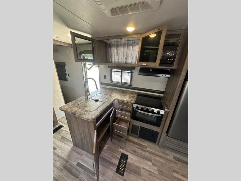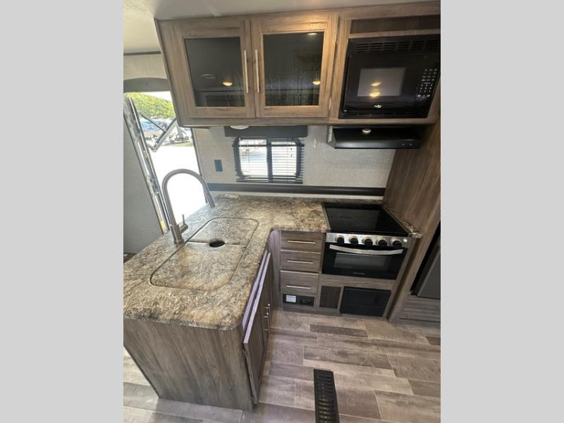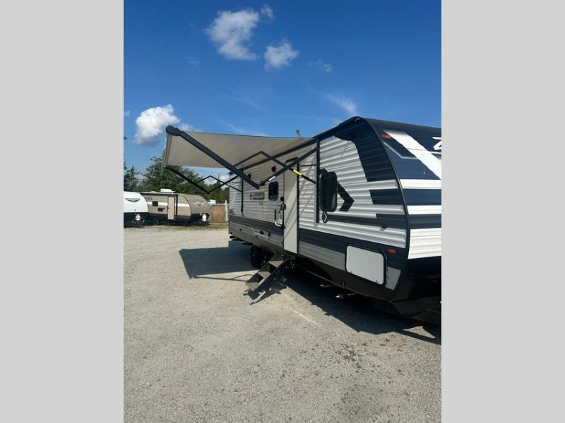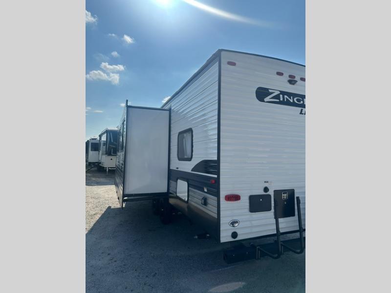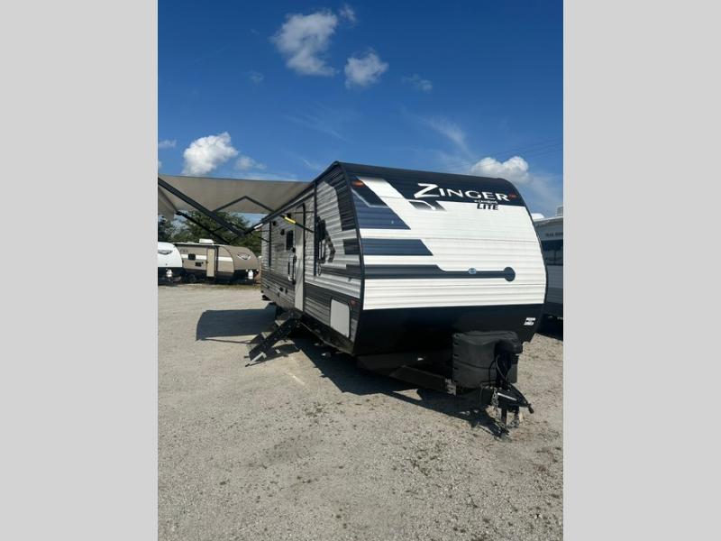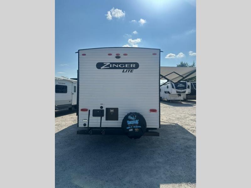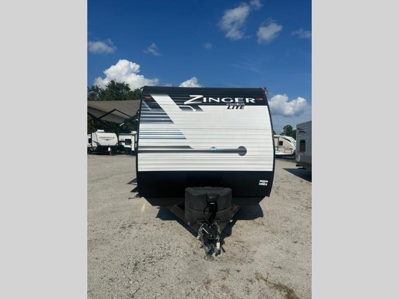 Join the CrossRoads family with a Zinger Lite travel trailer! You'll enjoy an abundance of standard features you would usually find with higher priced travel trailers. Each model features an aerodynamic front end for a more sleek look and better wind resistance when towing. You will appreciate the molded rain gutters with 3" drip spouts, plus Secure Stance entry steps and Keyed-A-Like doors. Having an AM/FM stereo with a Bluetooth soundbar will allow you to listen to your favorite tunes as you camp, and there are outdoor speakers with LED accents if you plan to take the party outdoors. The Zinger Lite also features a 81" interior ceiling height, generous storage space, plus popular options that can be added to further customize your RV. Choose yours today!