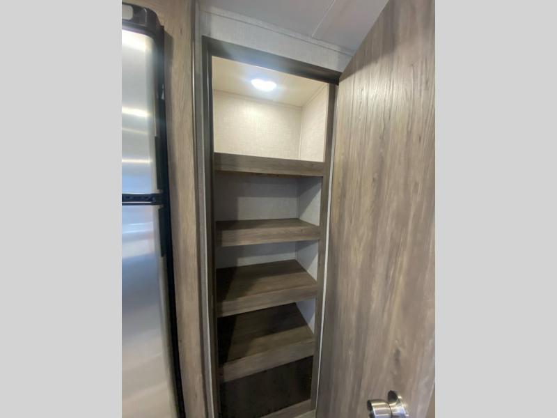 Pack up the kids and invite the cousins and grandparents for a fun camping trip in this Zinger Lite travel trailer. Or make it a friends camping trip with sleeping space for ten people in this unit with the addition of the bunk beds. Slide out the U-shaped dinette and the jackknife sofa to give extra space to the living and kitchen area. This model features full bath and kitchen amenities making your camping trip that much easier. You will enjoy the front private bedroom that includes an RV queen bed, plus two shirt closets. This travel trailer also includes a pantry for all your dry goods, overhead compartments for books and knickknacks, and an entertainment center.