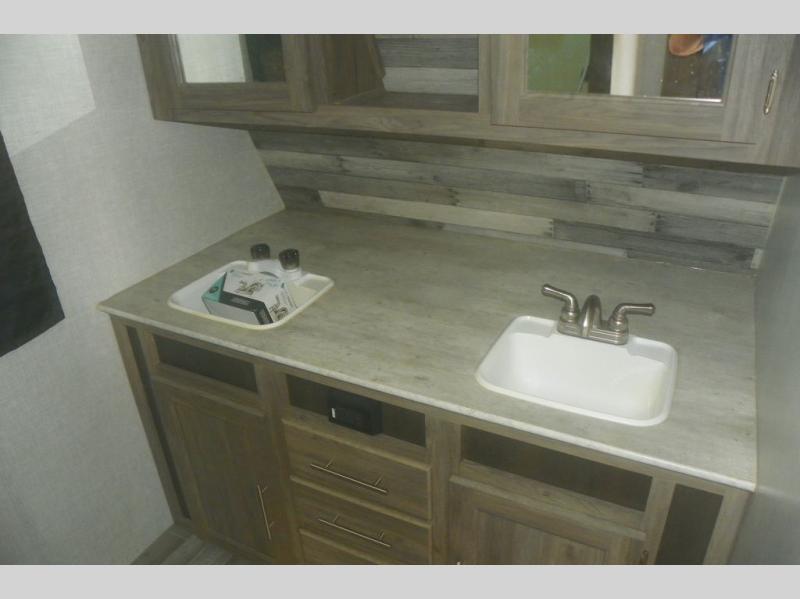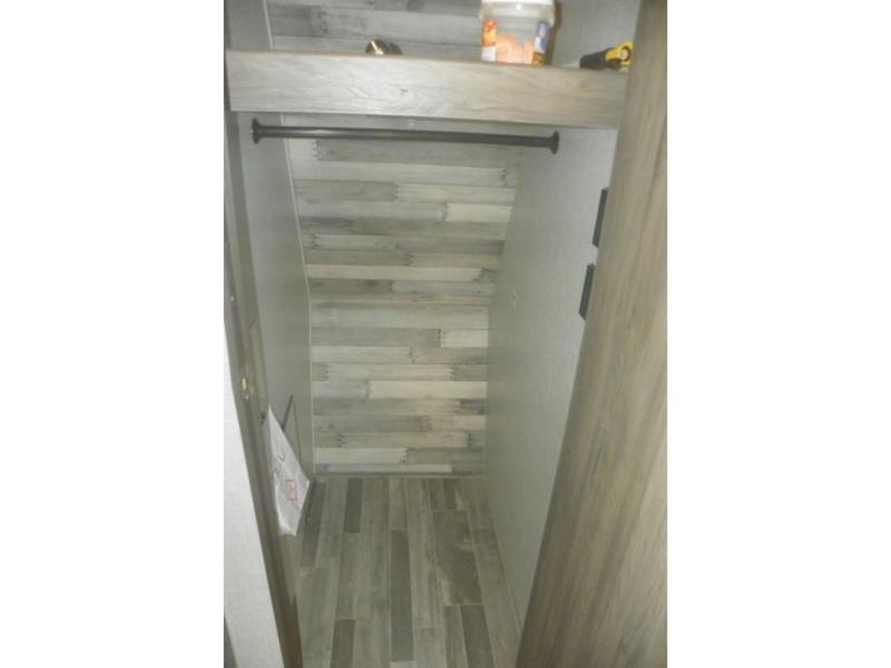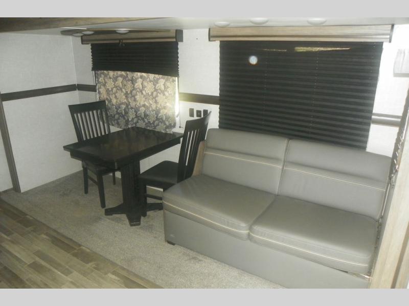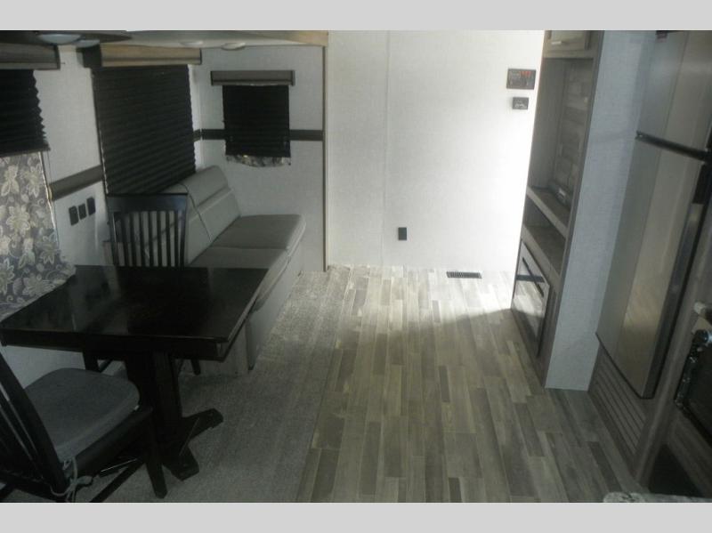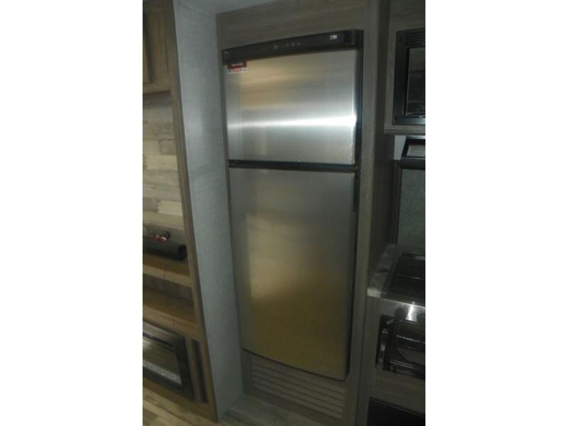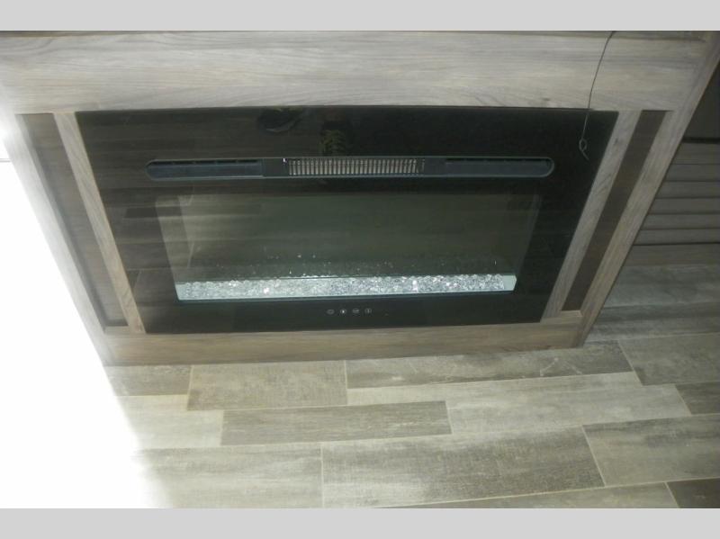 Head out on your greatest adventure with this travel trailer! You will feel right at home with the rear private bedroom featuring a 60" x 74" RV queen bed with shirt closets on either side and overhead cabinets above to store your items. The full front bathroom allows two to get ready at once with the dual-sink vanity, and the closet is prepped to add the optional washer and dryer for you to wash your clothes and in result, pack less clothes. The dual entry doors make for a smooth flow of traffic in and out of the unit, and the 60" jackknife sofa across from the entertainment center with a fireplace and 39" TV is the perfect place to wind down your nights!