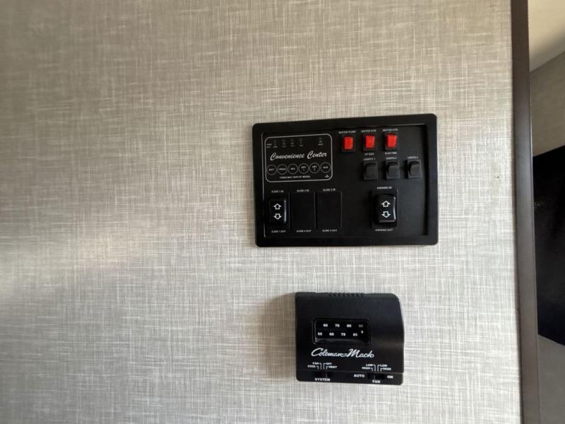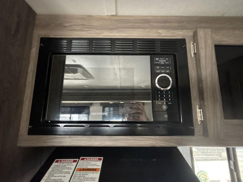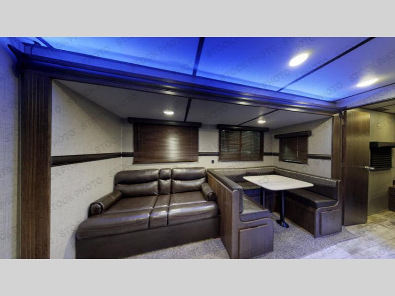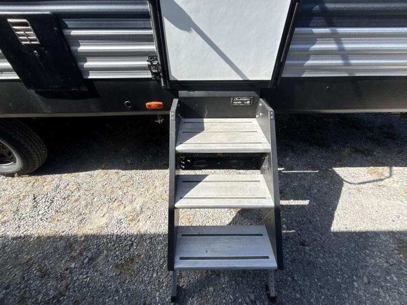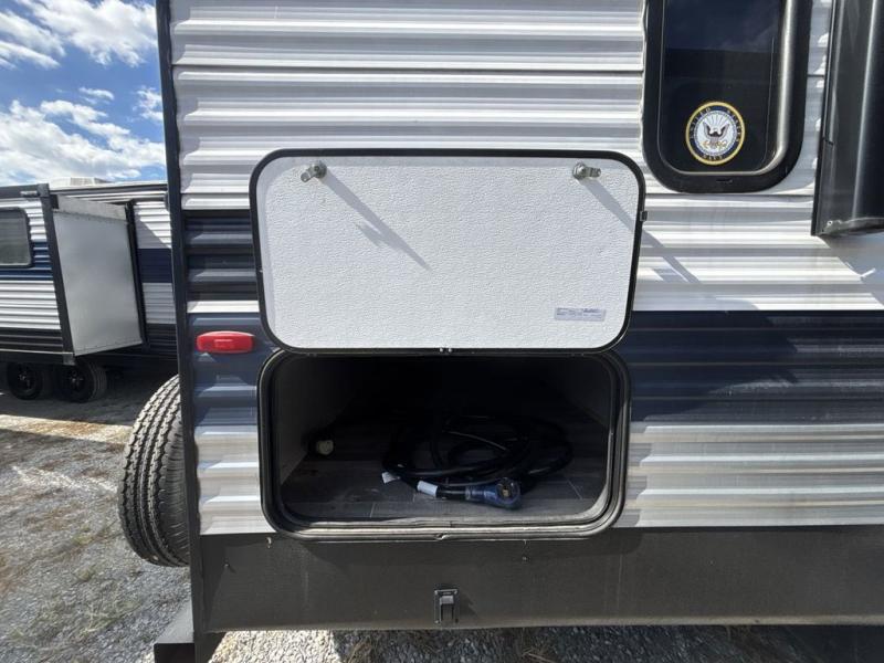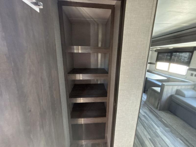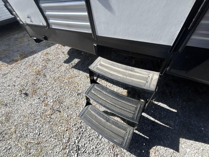 Head out on your greatest adventure with this travel trailer! You will feel right at home with the rear private bedroom featuring a 60" x 74" RV queen bed with shirt closets on either side and overhead cabinets above to store your items. The full front bathroom allows two to get ready at once with the dual-sink vanity, and the closet is prepped to add the optional washer and dryer for you to wash your clothes and in result, pack less clothes. The dual entry doors make for a smooth flow of traffic in and out of the unit, and the 60" jackknife sofa across from the entertainment center with a fireplace and 39" TV is the perfect place to wind down your nights!