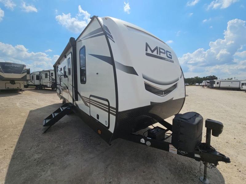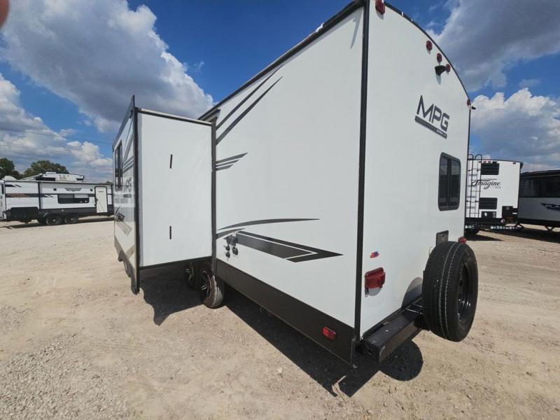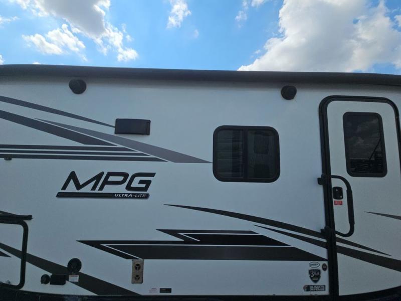 With any MPG travel trailer or toy hauler by Cruiser you will find a 6' 11" barrel roof, Azdel composite laminated walls, and a high gloss fiberglass front cap with LED lighting for a sleek look. There are seamless kitchen countertops and plywood flooring that will be easy to clean, plus residential hardwood cabinets with hidden hinges for a more at-home feel. The slam latch baggage doors with magnetic latches will make loading up easier than ever, plus the full belly storage system includes LED lights you are sure to appreciate. Each model also includes multiple charging stations with 12v and USB ports, a four speaker soundbar system to listen to your playlists, and a dual ducted A/C to keep you cool during those hot summer months!