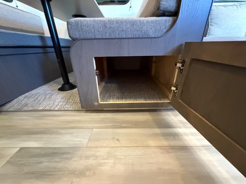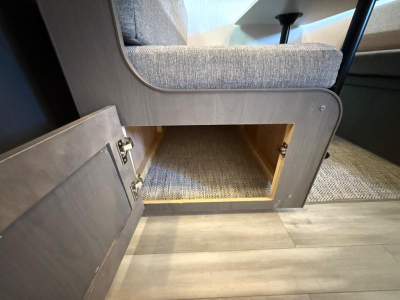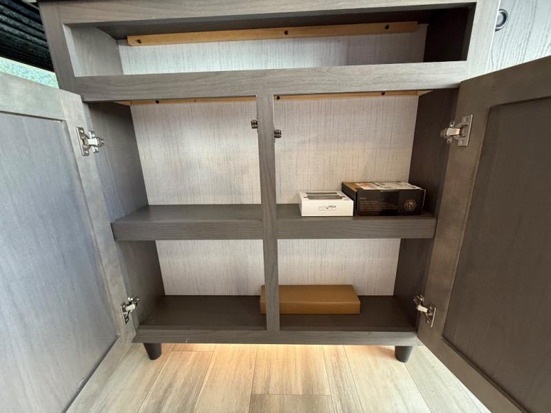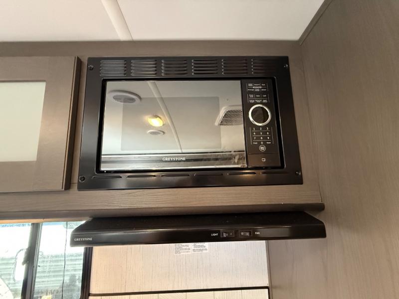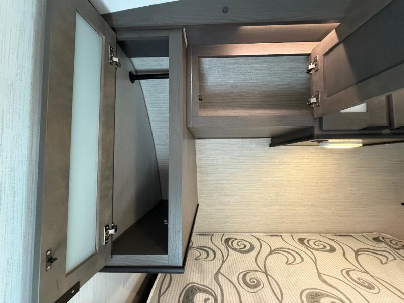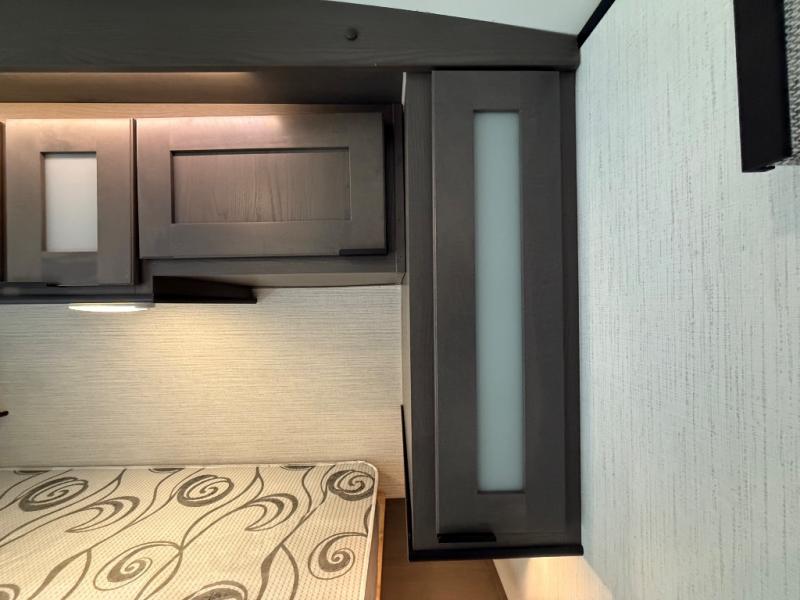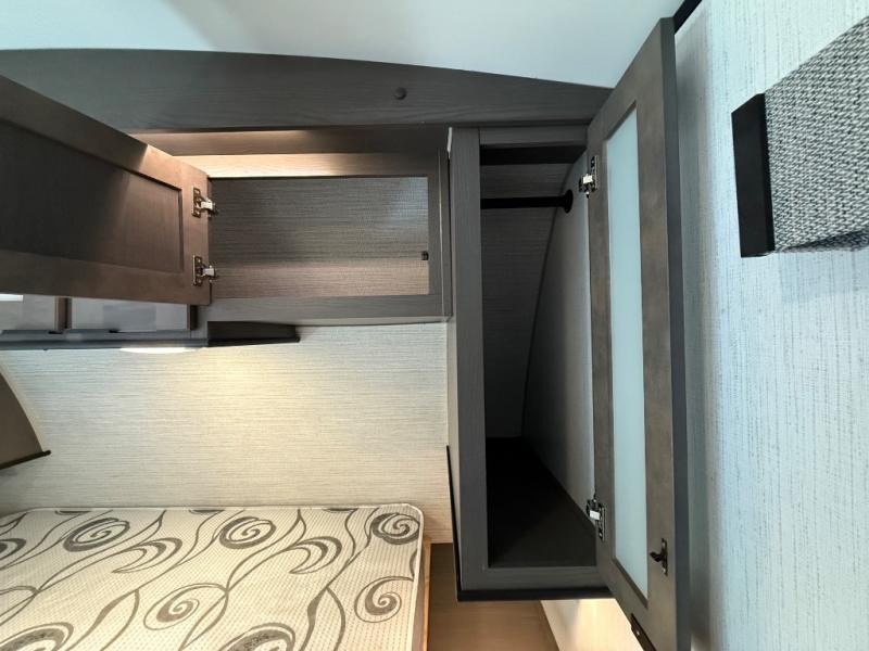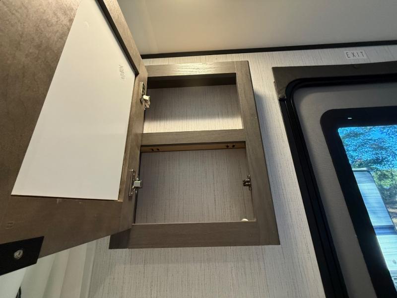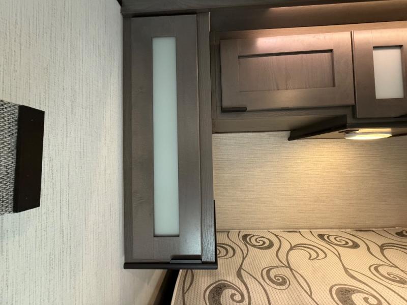 With any MPG travel trailer or toy hauler by Cruiser you will find a 6' 11" barrel roof, Azdel composite laminated walls, and a high gloss fiberglass front cap with LED lighting for a sleek look. There are seamless kitchen countertops and plywood flooring that will be easy to clean, plus residential hardwood cabinets with hidden hinges for a more at-home feel. The slam latch baggage doors with magnetic latches will make loading up easier than ever, plus the full belly storage system includes LED lights you are sure to appreciate. Each model also includes multiple charging stations with 12v and USB ports, a four speaker soundbar system to listen to your playlists, and a dual ducted A/C to keep you cool during those hot summer months!
