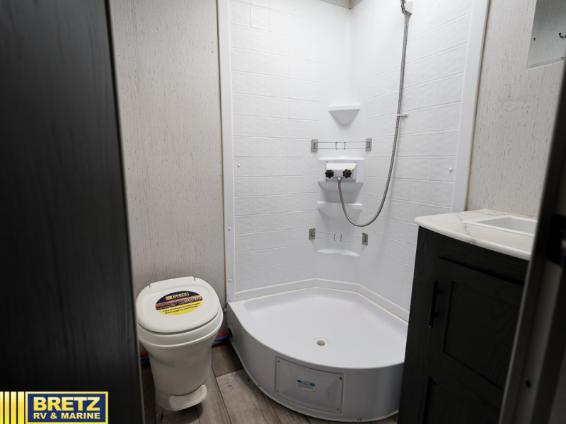 This Aspen Trail travel trailer is the perfect couple's getaway! With a queen-size bed up front that has wardrobes on either side and overhead cabinets above, as well as a rear corner bathroom, you can start each day clean and relaxed. Plus, the bathroom even features a skylight above the neo-angled shower for added natural lighting. Just outside the bathroom is a closet for you to use how you please, and across from it is the booth dinette where you can enjoy your meals, play a card game, or even transform into an extra sleeping space if needed!