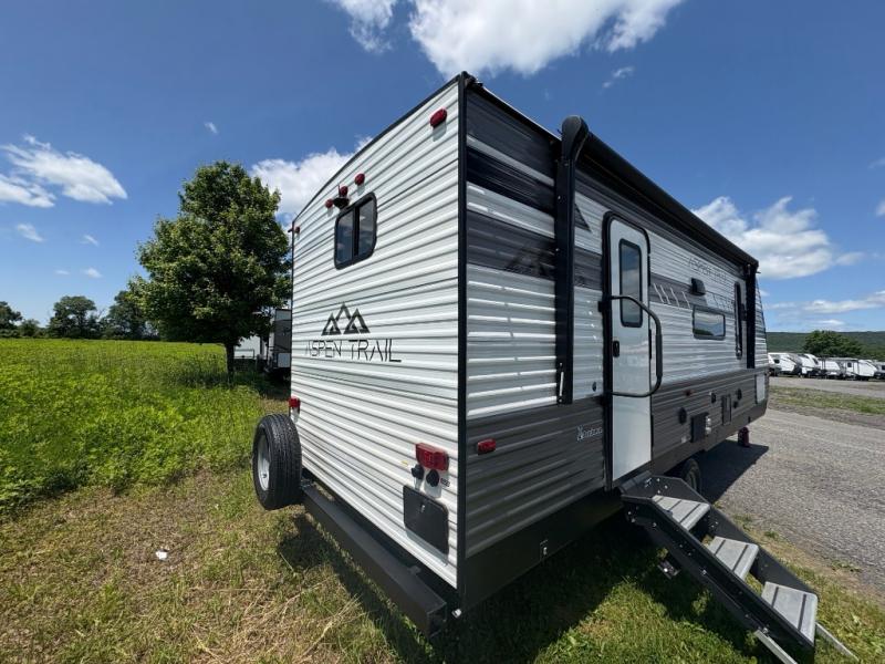 You will find more standard features and more value in each one of these Dutchmen RV Aspen Trail travel trailers! The aerodynamic front profile not only makes them easier to tow, but also more fuel efficient. Experience all of the power with power stabilizers, a power awning, and a power tongue jack for easy setting up and breaking down. The fully enclosed underbelly provides an extra layer of protection for your unit's vitals so you can camp further into the year. With aluminum steps, you will have a solid platform of stability as you enter and exit, plus they are easy to expand or store away. The backup camera prep offers peace of mind as you navigate your unit and the upgraded Beauflor lino throughout will be easy to clean so you don't have to worry about mud getting tracked inside. Come find the one that best suits your needs today!