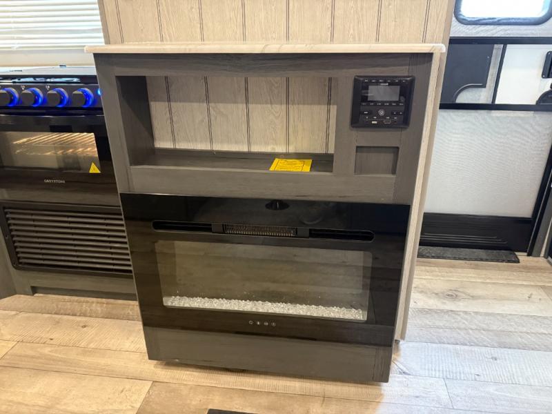 Head out on a weekend getaway with your spouse in this Aspen Trail travel trailer! You will enjoy a good night's rest each night on the queen-size bed in the front private bedroom. The U-shaped dinette is not only a great place to eat your meals at, but also to play games at while you enjoy the fireplace across from it. The full rear bathroom has everything you will need to start the day feeling fresh, including an exhaust fan to eliminate the steam from your nice, hot shower. No need to worry about where you will store all of your outdoor camping gear either because the pass-through storage area has you covered!