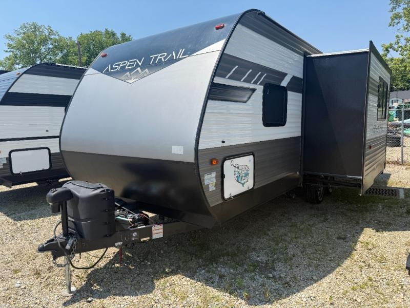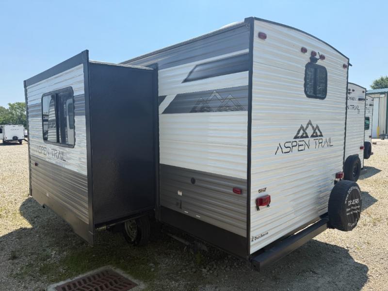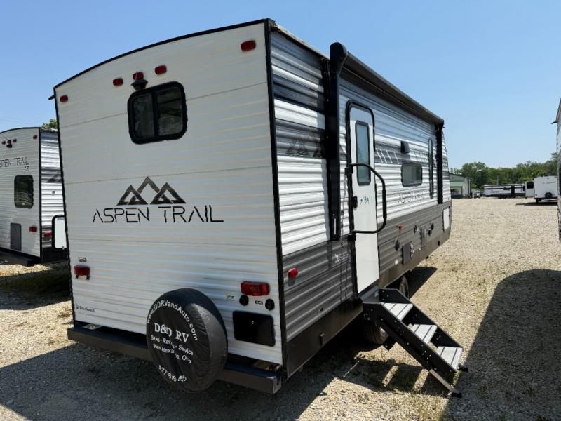 You will find more standard features and more value in each one of these Dutchmen RV Aspen Trail travel trailers! The aerodynamic front profile not only makes them easier to tow, but also more fuel efficient. Experience all of the power with power stabilizers, a power awning, and a power tongue jack for easy setting up and breaking down. The fully enclosed underbelly provides an extra layer of protection for your unit's vitals so you can camp further into the year. With aluminum steps, you will have a solid platform of stability as you enter and exit, plus they are easy to expand or store away. The backup camera prep offers peace of mind as you navigate your unit and the upgraded Beauflor lino throughout will be easy to clean so you don't have to worry about mud getting tracked inside. Come find the one that best suits your needs today!