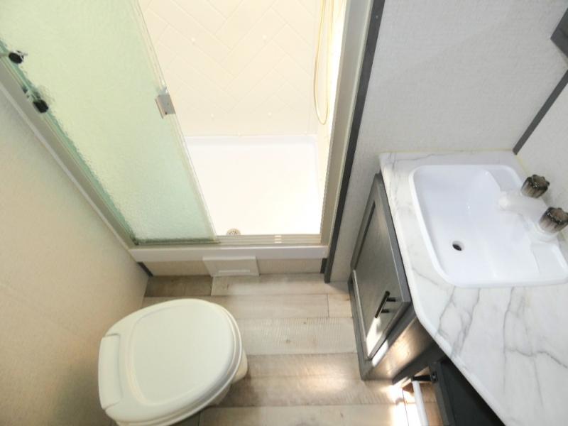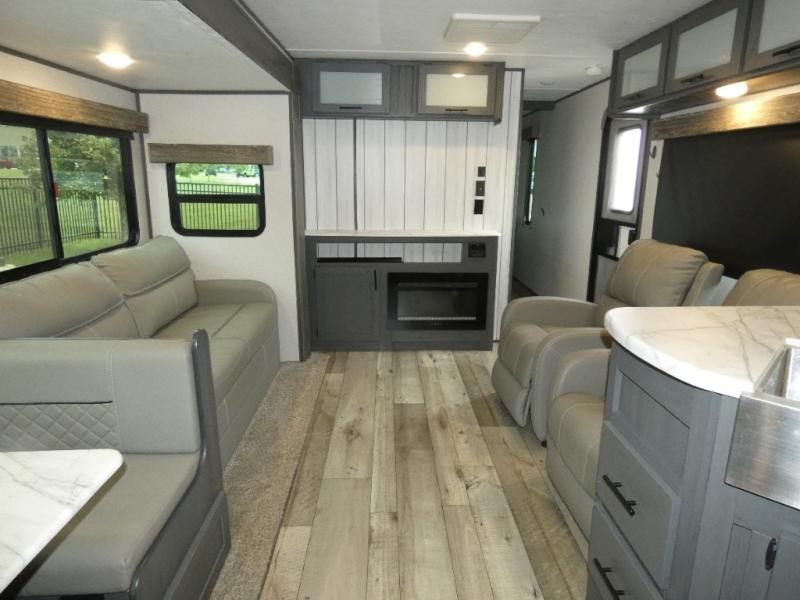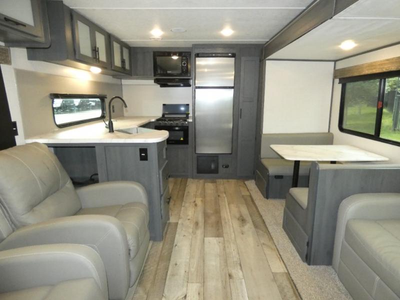 When you're ready for a camping experience of a lifetime, check out this Aspen Trail travel trailer! The rear kitchen makes it easier for you to move around and create your best meals, and then you can comfortably enjoy those meals at the booth dinette which can transform into an extra sleeping space when needed. When mother nature rains on your parade, you can relax inside on either one of the two recliner chairs or lie down on the sofa with EZ storage. The full bathroom makes it easy for everyone to stay clean, and the skylight above the shower adds natural lighting!