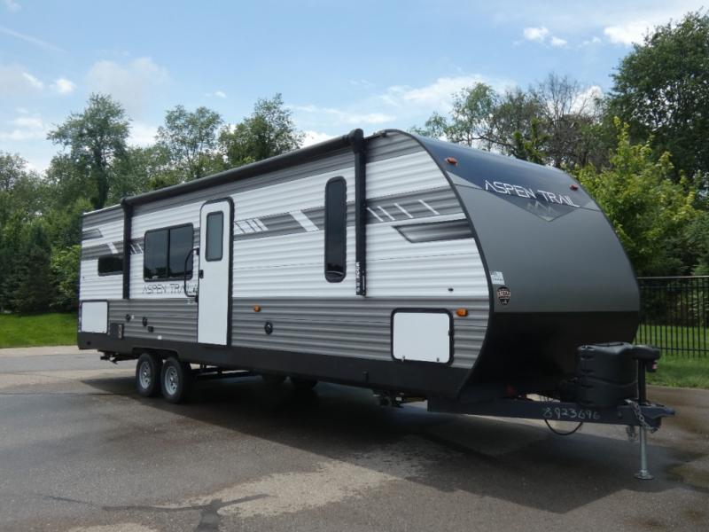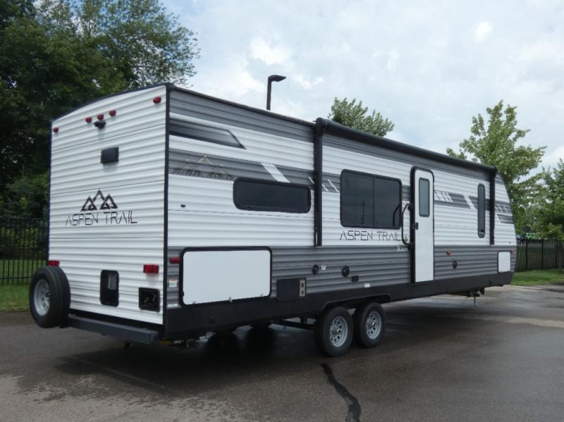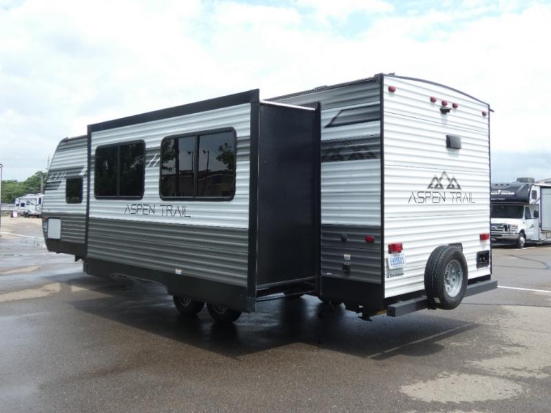 You will find more standard features and more value in each one of these Dutchmen RV Aspen Trail travel trailers! The aerodynamic front profile not only makes them easier to tow, but also more fuel efficient. Experience all of the power with power stabilizers, a power awning, and a power tongue jack for easy setting up and breaking down. The fully enclosed underbelly provides an extra layer of protection for your unit's vitals so you can camp further into the year. With aluminum steps, you will have a solid platform of stability as you enter and exit, plus they are easy to expand or store away. The backup camera prep offers peace of mind as you navigate your unit and the upgraded Beauflor lino throughout will be easy to clean so you don't have to worry about mud getting tracked inside. Come find the one that best suits your needs today!