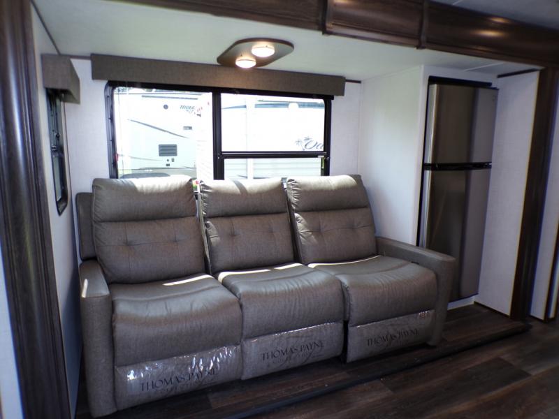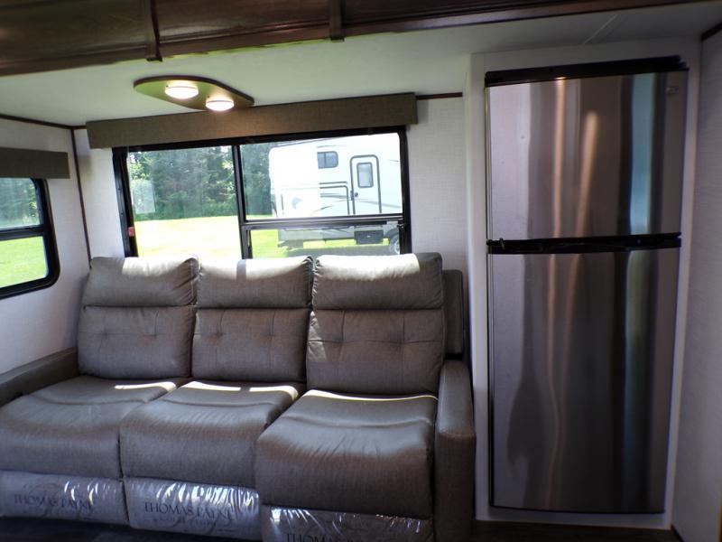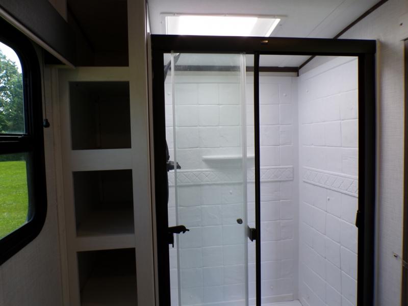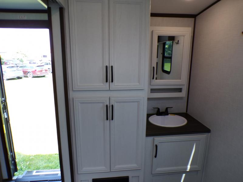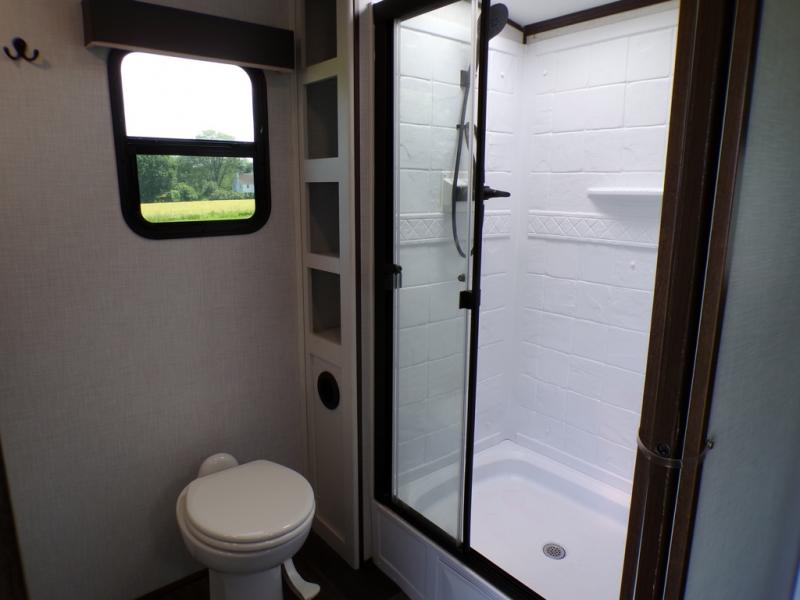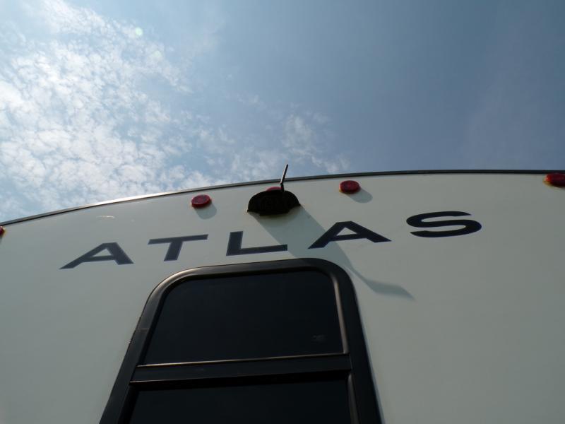 Journeys have never been more fun or packed with amenities than with the Dutchmen Atlas fifth wheel or travel trailer! These units come equipped with outside speakers, preparations for a backup camera, an oversized lighted pass-through storage, and a fully enclosed and heated underbelly. The friction-hinge entry door won't fly away when you open it, and the exterior spray port lets you hook up a hose to provide water when you need it. The fifth wheels have an electric four-point leveling system, and the travel trailers have electric stabilizer jacks. A painted fiberglass front cap protects the front portion of your Atlas, and the electric adjustable awning with LED lights is going to allow you to party outside with shade when you want it.